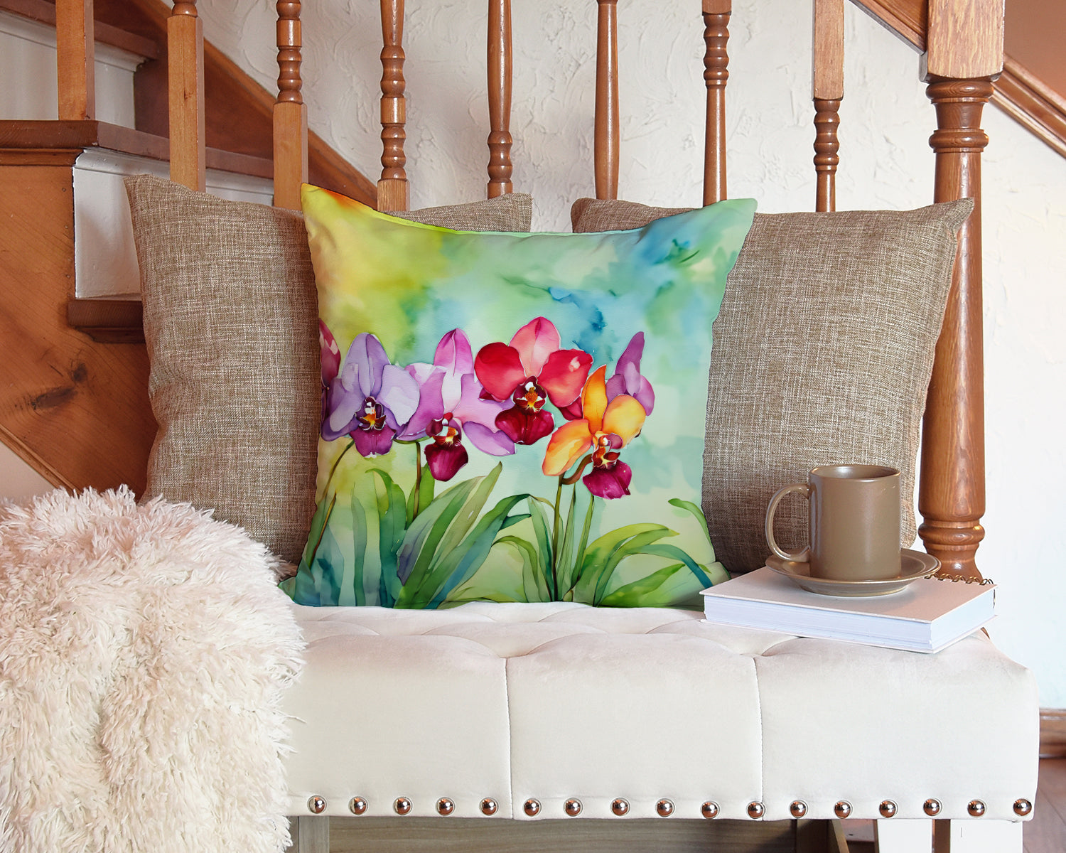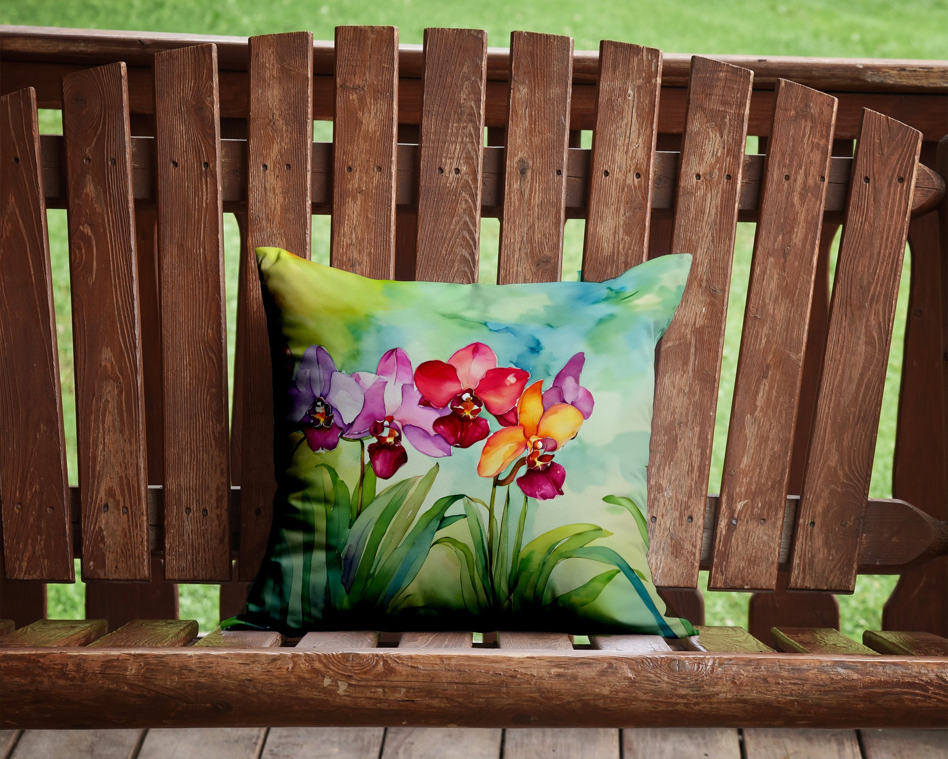 Throw Pillow featuring breed specific Orchids artwork. Add a touch of vibrancy and comfort to your outdoor seating with Caroline's Treasures Fabric Decorative Pillow. Measuring approximately 14 inches by 14 inches, this outdoor pillow is crafted to elevate the appeal of your patio furniture, infusing it with vivid color and artistic flair. The pillow includes a 100% Polyester Fabric sham filled with a quality pillow form to provide superior comfort. Innovatively made from our brand new material, specifically woven for its water resistance, this pillow is designed for durability. The soft canvas fabric offers versatility in use, fit for your indoor couch or your outdoor patio, porch, or veranda. The fabric is dyed with colorfast dyes built for resilience against weather conditions, ensuring the pillow retains its beauty over time. Constructed by sewing three fabric pieces to create a sham, the polyester insert is then nestled inside to form the pillow, resulting in an overstuffed pillow that maintains its shape. Both the sham and the pillow insert are proudly made in the United States. As the pillows are handcrafted, there may be minor variations in size, further enhancing their unique charm. Experience comfort in style with Caroline's Treasures Fabric Decorative Pillow.