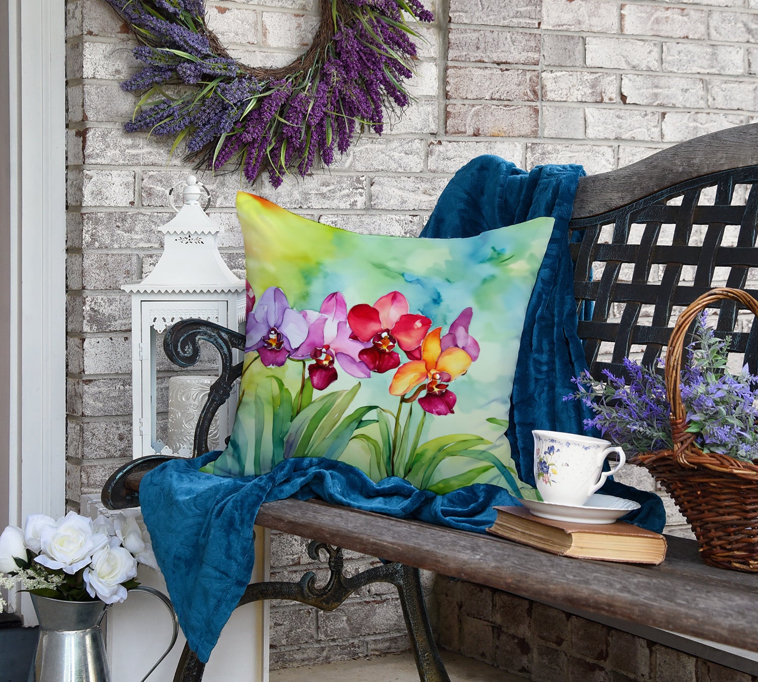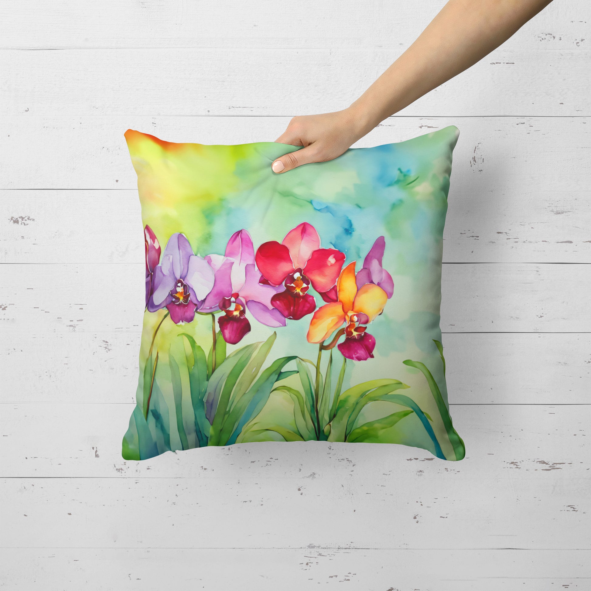 Throw Pillow featuring breed specific Orchids artwork. Revitalize your outdoor or indoor living space with Caroline's Treasures 18x18 Fabric Decorative Pillow. With a generously sized dimension of approximately 18 inches by 18 inches, this pillow makes a comfortable and aesthetic addition to any seating area. Made from a unique, water-resistant material developed by Caroline's Treasures, the pillow sham is 100% polyester fabric that's durable and ready to weather any condition. Its vibrant, full-color artwork will not fade over time as it is dyed with color-fast dyes. Whether you place it on your patio furniture, porch, veranda, or indoor couch, its soft canvas fabric ensures a cozy experience. The pillow is handcrafted in the United States, featuring a sham created from three pieces of fabric and a polyester insert for enduring shape and overstuffed comfort. Despite being robustly built to endure the outdoors, it is as soft and snug as your favorite indoor cushions. Please note, as all our pillows are handmade, sizes may vary slightly, adding to the charm of this unique decorative item.