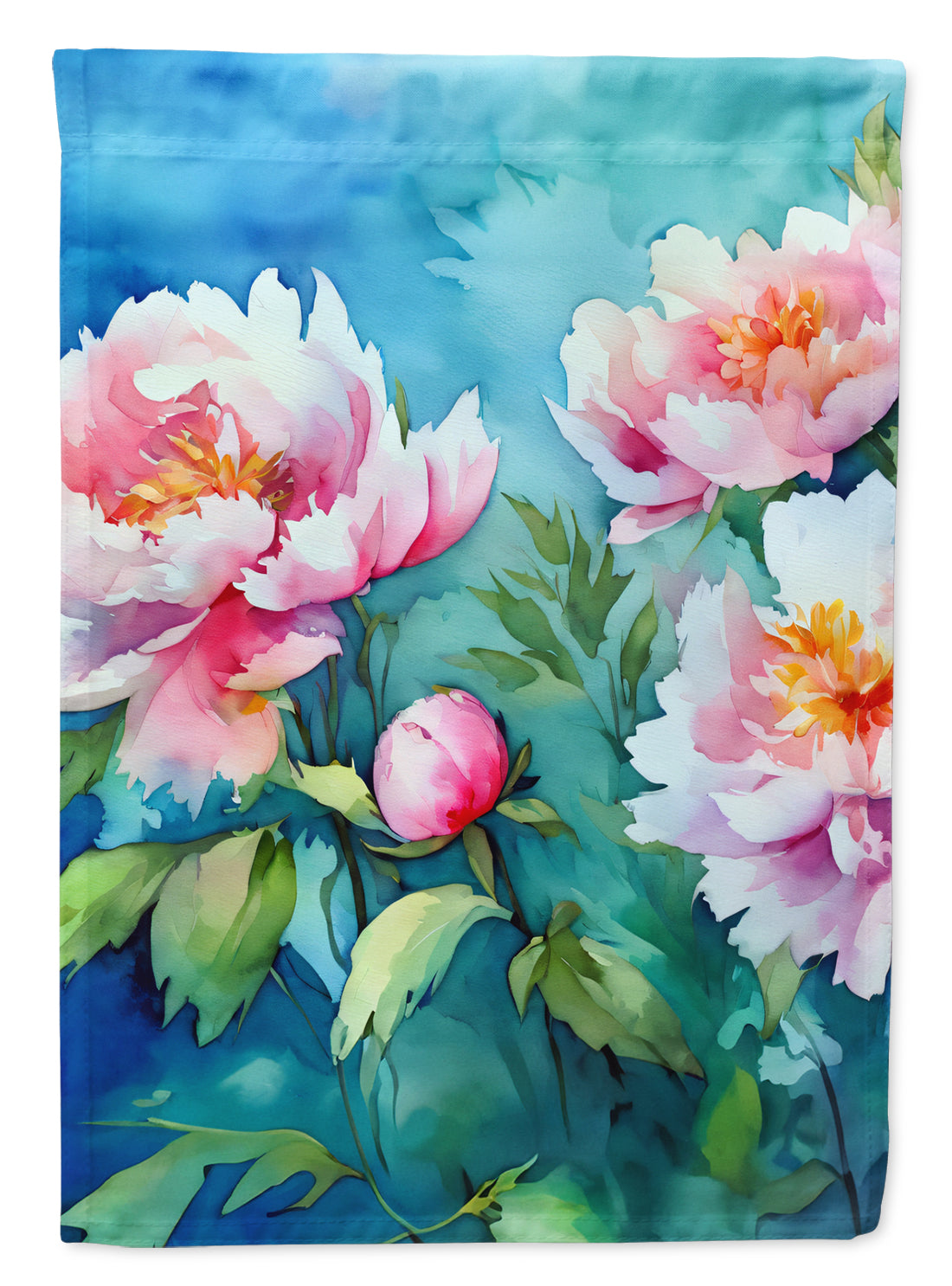 Garden Flag featuring breed specific Peonies artwork. Enhance the beauty of your garden, patio, or yard with Caroline's Treasures Decorative Garden Flag, proudly made in the USA. Crafted from two pieces of thick, double-sided polyester fabric, this 2-ply garden flag is designed to withstand various weather conditions, making it water-resistant and weatherproof. Featuring correctly readable words on both sides, this garden flag offers a delightful visual experience from any angle. With its heavier weight, it stands out among other garden flags, ensuring stability and durability even in wind, rain, and snow. Measuring approximately 11 1/4 inches by 15 1/2 inches, this flag allows you to personalize your outdoor decor. It comes with a 1 1/2-inch sleeve sewn in, allowing easy attachment to any standard garden flag stand or garden size porch hanger (sold separately). Make a statement in your outdoor space with Caroline's Treasures Decorative Garden Flag, a vibrant and high-quality flag that adds color and personality to your surroundings. Proudly made in the USA, it's a symbol of quality craftsmanship and attention to detail.
