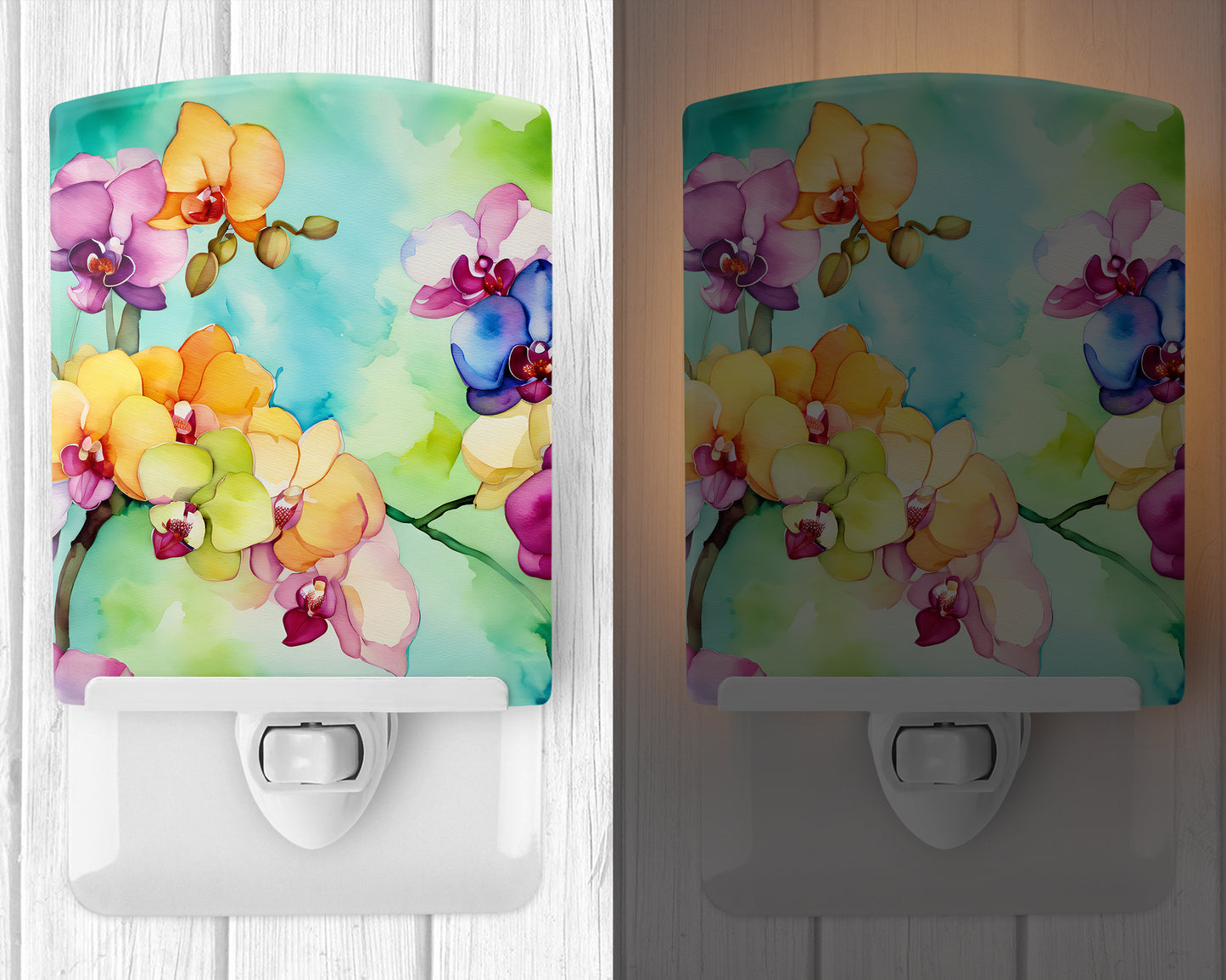 Ceramic Night Light featuring breed specific Orchids artwork. Introduce a splash of artistic flair and subtle illumination to your space with the Decorative Ceramic Night Light from Caroline's Treasures. Perfect for any room, this night light seamlessly blends functionality with an aesthetic appeal, offering a stylish solution to brighten up dark corners of your home or office. Boasting a six-inch high by four-inch wide ceramic tile at the front, it showcases vivid, full-color artwork from distinguished artists, transforming a simple utility into a vibrant art piece. The artwork is securely encased in a robust metal holder, ensuring durability and longevity. Two screws are provided to firmly affix the tile into the holder. The holder extends three inches deep, housing an included bulb that emits a soft, welcoming glow. This product meets all safety standards, as evidenced by its UL approval. Proudly made in the United States from imported components, this Decorative Ceramic Night Light is not just a functional device; it's a statement piece that enhances the ambiance of your surroundings.