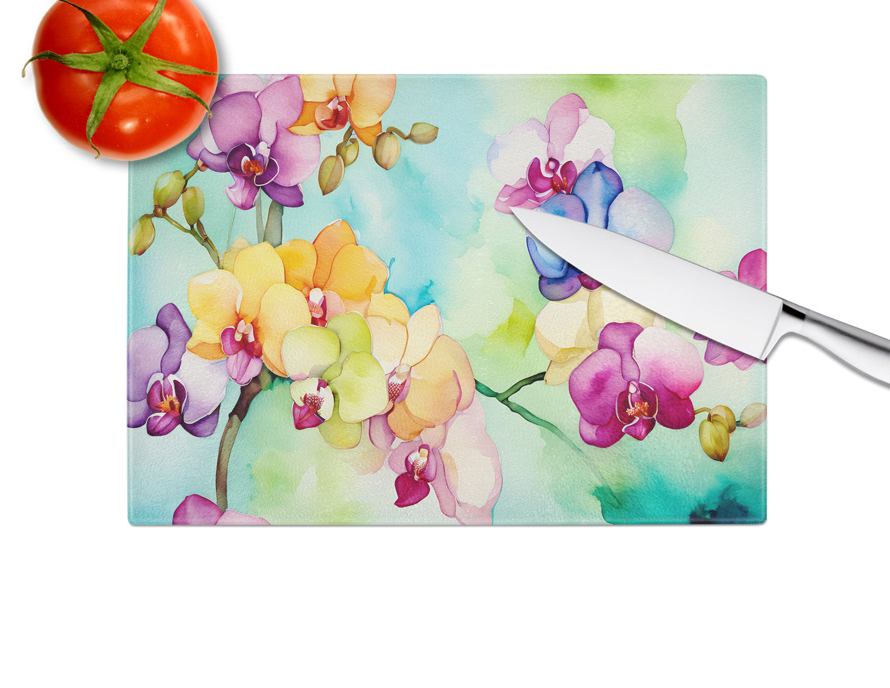Orchids in Watercolor Glass Cutting Board