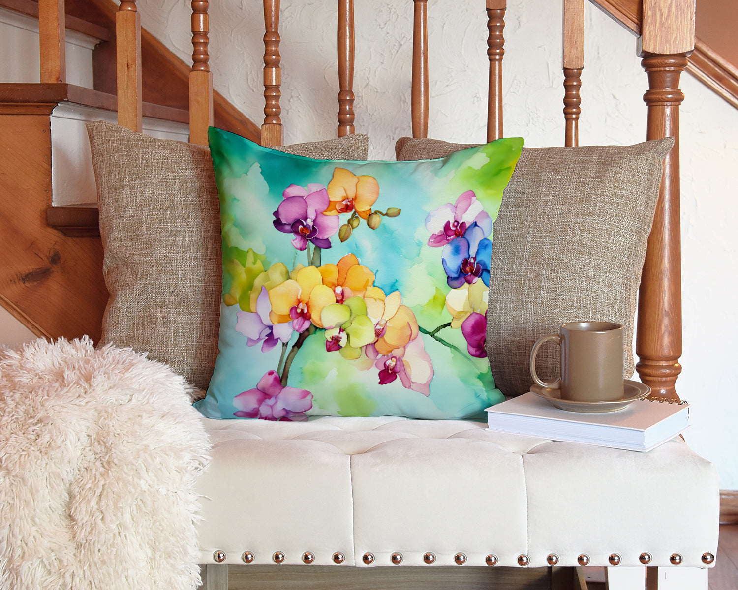 Throw Pillow featuring breed specific Orchids artwork. Add a touch of vibrancy and comfort to your outdoor seating with Caroline's Treasures Fabric Decorative Pillow. Measuring approximately 14 inches by 14 inches, this outdoor pillow is crafted to elevate the appeal of your patio furniture, infusing it with vivid color and artistic flair. The pillow includes a 100% Polyester Fabric sham filled with a quality pillow form to provide superior comfort. Innovatively made from our brand new material, specifically woven for its water resistance, this pillow is designed for durability. The soft canvas fabric offers versatility in use, fit for your indoor couch or your outdoor patio, porch, or veranda. The fabric is dyed with colorfast dyes built for resilience against weather conditions, ensuring the pillow retains its beauty over time. Constructed by sewing three fabric pieces to create a sham, the polyester insert is then nestled inside to form the pillow, resulting in an overstuffed pillow that maintains its shape. Both the sham and the pillow insert are proudly made in the United States. As the pillows are handcrafted, there may be minor variations in size, further enhancing their unique charm. Experience comfort in style with Caroline's Treasures Fabric Decorative Pillow.