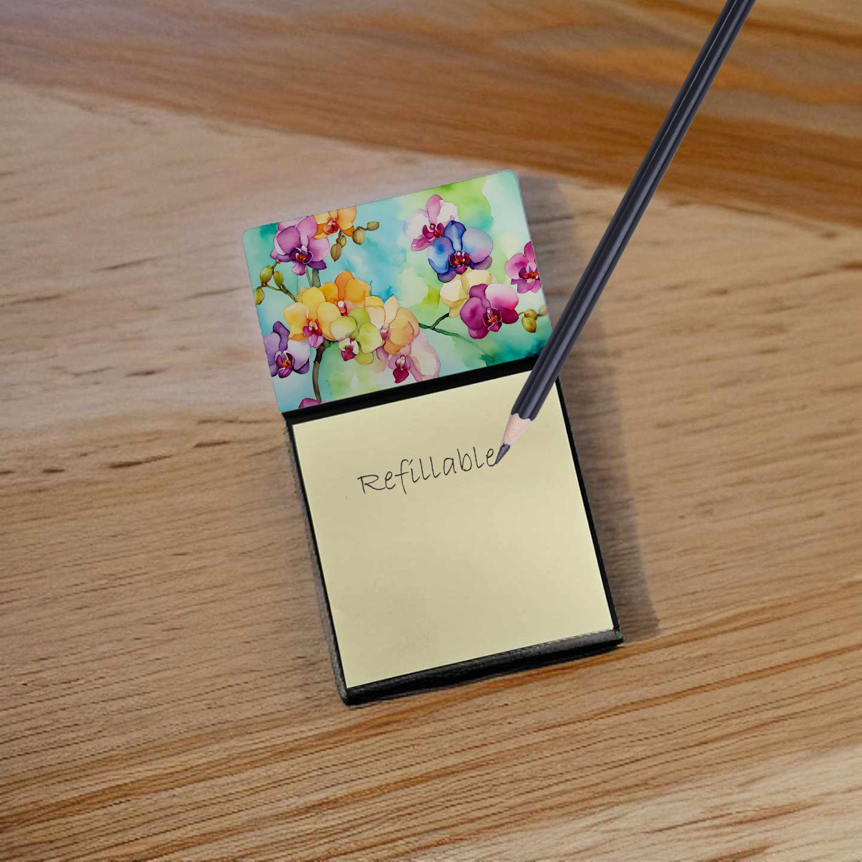 Sticky Note Holder featuring breed specific Orchids artwork. Add a touch of creativity and flair to your desk with the Decorative Sticky Note Holder from Caroline's Treasures. This uniquely designed sticky note dispenser will not only keep your notes in one place but also add an artistic element to your workspace. The top of the holder features beautiful artwork that is sure to catch the eye. Crafted for convenience, this sticky note holder comes with a small pad of 3-inch x 3-inch sticky notes at the bottom. The holder is designed for easy refilling; simply remove the last sheet of a new sticky note pad and stick it onto the board. This feature ensures you will always have sticky notes at your disposal. This Sticky Note Holder makes a perfect gift. Be it for your colleagues at work, your Facebook friends, or even your dog groomer or hairdresser, this versatile product fits the bill. You can use it for making grocery lists, leaving notes for loved ones, or for jotting down important reminders. The bottom board is rigid and can be magnetized by adding a business card size magnet to the back (sold separately). This makes it even more versatile, allowing you to place it on a refrigerator or any other magnetic surface. With this Sticky Note Holder, you're not only organizing your notes, but also personalizing your space.