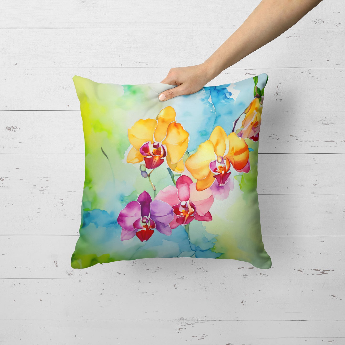 Throw Pillow featuring breed specific Orchids artwork. Revitalize your outdoor or indoor living space with Caroline's Treasures 18x18 Fabric Decorative Pillow. With a generously sized dimension of approximately 18 inches by 18 inches, this pillow makes a comfortable and aesthetic addition to any seating area. Made from a unique, water-resistant material developed by Caroline's Treasures, the pillow sham is 100% polyester fabric that's durable and ready to weather any condition. Its vibrant, full-color artwork will not fade over time as it is dyed with color-fast dyes. Whether you place it on your patio furniture, porch, veranda, or indoor couch, its soft canvas fabric ensures a cozy experience. The pillow is handcrafted in the United States, featuring a sham created from three pieces of fabric and a polyester insert for enduring shape and overstuffed comfort. Despite being robustly built to endure the outdoors, it is as soft and snug as your favorite indoor cushions. Please note, as all our pillows are handmade, sizes may vary slightly, adding to the charm of this unique decorative item.