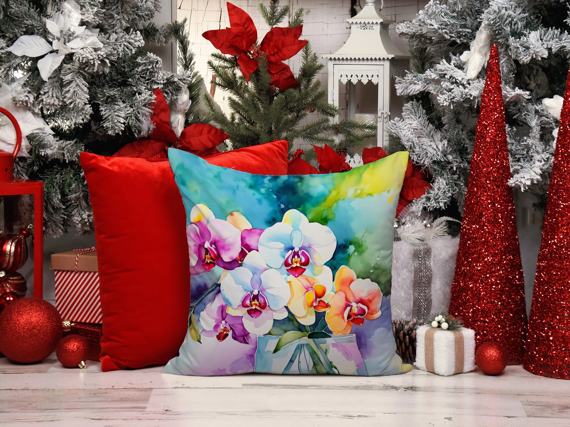 Throw Pillow featuring breed specific Orchids artwork. Add a touch of vibrancy and comfort to your outdoor seating with Caroline's Treasures Fabric Decorative Pillow. Measuring approximately 14 inches by 14 inches, this outdoor pillow is crafted to elevate the appeal of your patio furniture, infusing it with vivid color and artistic flair. The pillow includes a 100% Polyester Fabric sham filled with a quality pillow form to provide superior comfort. Innovatively made from our brand new material, specifically woven for its water resistance, this pillow is designed for durability. The soft canvas fabric offers versatility in use, fit for your indoor couch or your outdoor patio, porch, or veranda. The fabric is dyed with colorfast dyes built for resilience against weather conditions, ensuring the pillow retains its beauty over time. Constructed by sewing three fabric pieces to create a sham, the polyester insert is then nestled inside to form the pillow, resulting in an overstuffed pillow that maintains its shape. Both the sham and the pillow insert are proudly made in the United States. As the pillows are handcrafted, there may be minor variations in size, further enhancing their unique charm. Experience comfort in style with Caroline's Treasures Fabric Decorative Pillow.