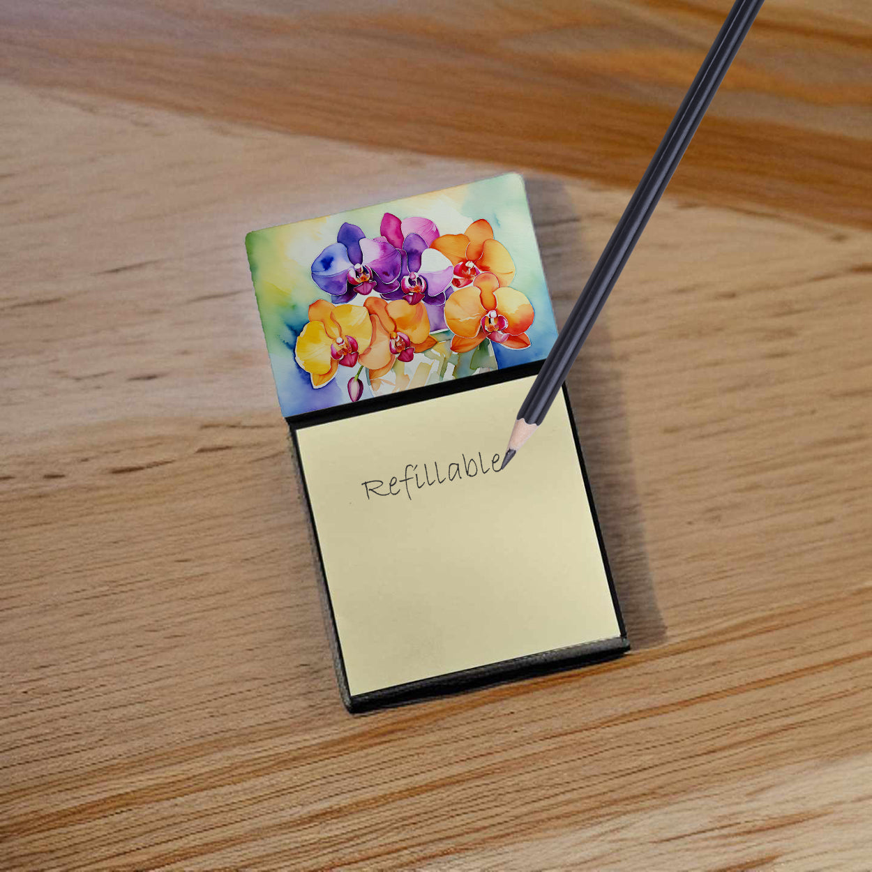 Sticky Note Holder featuring breed specific Orchids artwork. Add a touch of creativity and flair to your desk with the Decorative Sticky Note Holder from Caroline's Treasures. This uniquely designed sticky note dispenser will not only keep your notes in one place but also add an artistic element to your workspace. The top of the holder features beautiful artwork that is sure to catch the eye. Crafted for convenience, this sticky note holder comes with a small pad of 3-inch x 3-inch sticky notes at the bottom. The holder is designed for easy refilling; simply remove the last sheet of a new sticky note pad and stick it onto the board. This feature ensures you will always have sticky notes at your disposal. This Sticky Note Holder makes a perfect gift. Be it for your colleagues at work, your Facebook friends, or even your dog groomer or hairdresser, this versatile product fits the bill. You can use it for making grocery lists, leaving notes for loved ones, or for jotting down important reminders. The bottom board is rigid and can be magnetized by adding a business card size magnet to the back (sold separately). This makes it even more versatile, allowing you to place it on a refrigerator or any other magnetic surface. With this Sticky Note Holder, you're not only organizing your notes, but also personalizing your space.