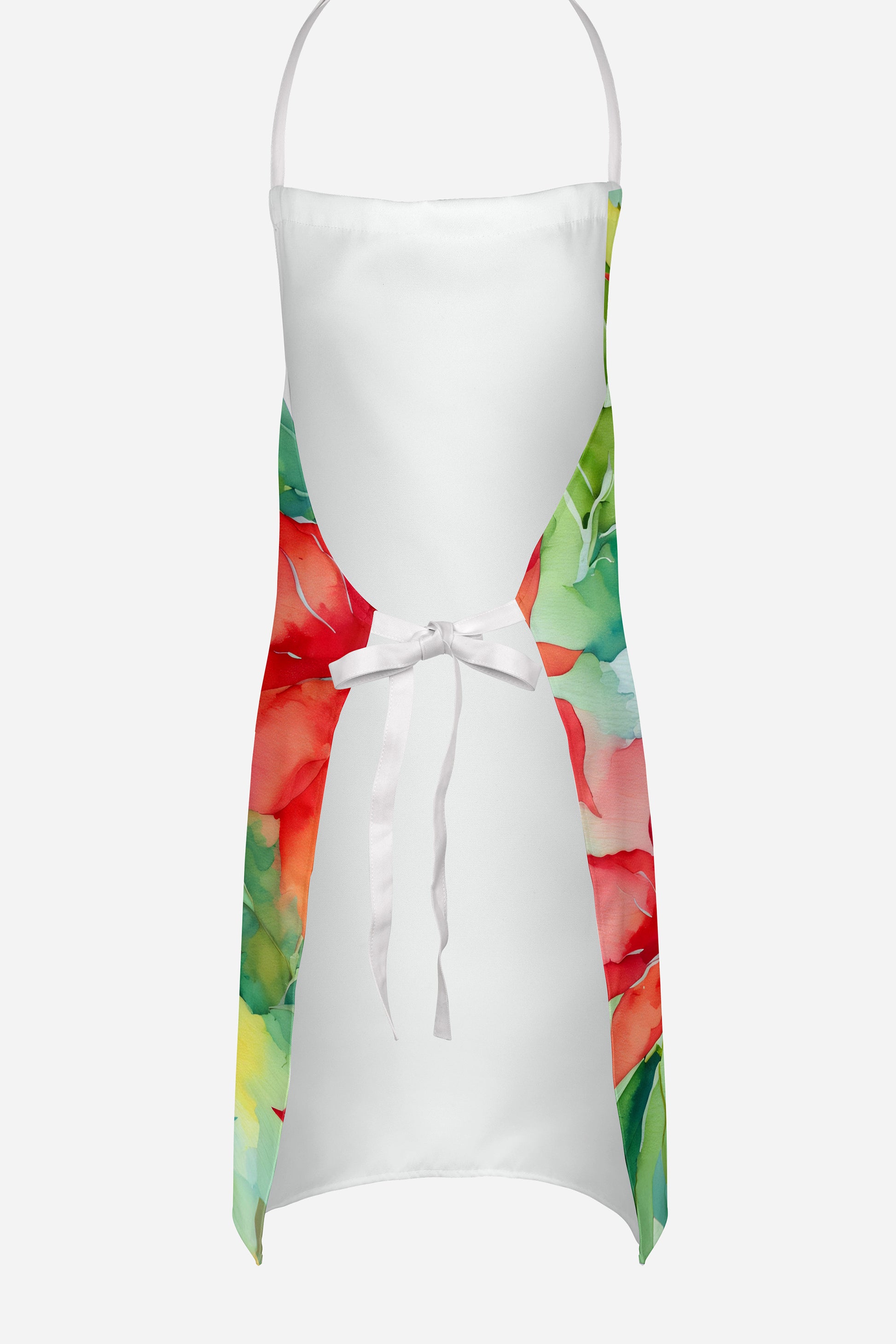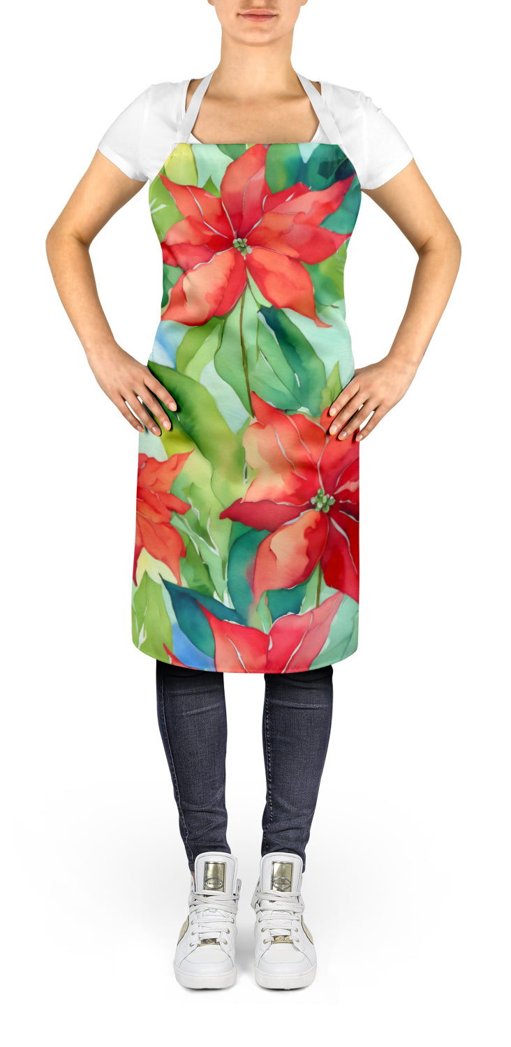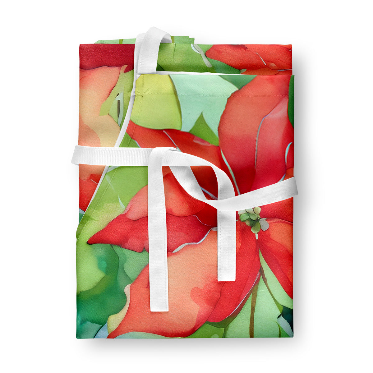Apron featuring breed specific Poinsettias artwork. Elevate your cooking, baking, and grilling experiences with our versatile Kitchen or BBQ Apron. This Bib Style apron isn't just limited to culinary activities - it also serves as an excellent baking apron, artist apron, server apron, gardening apron, or even a dog grooming apron. The apron showcases vibrant full-color artwork contributed by one of our talented artists, bringing a dash of style to your daily tasks. With dimensions of approximately 27"W x 30"H, it provides ample coverage to protect your clothing from spills and splashes. Our apron is meticulously crafted from 100% Ultra Spun Polyester, known for its durability and lightweight nature. The apron comes with white tie straps, ensuring a comfortable and adjustable fit for all. It's a perfect choice for kitchen apron enthusiasts, whether you are a woman or a man. Designed for easy maintenance, this apron is fully machine washable. The quick-drying polyester material actively reduces staining, keeping your apron looking fresh and new for longer. Our beautifully designed apron isn't just a functional kitchen accessory - it's a fashion statement in the culinary world!