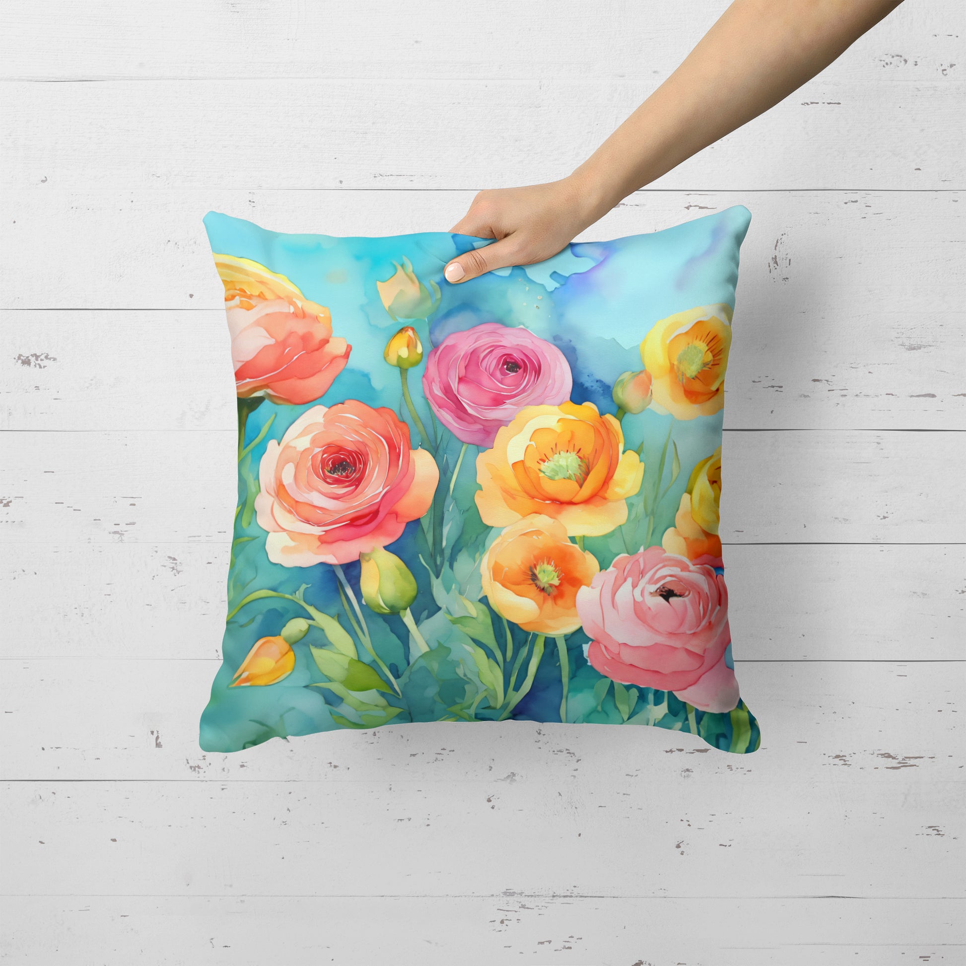 Ranunculus in Watercolor Throw Pillow