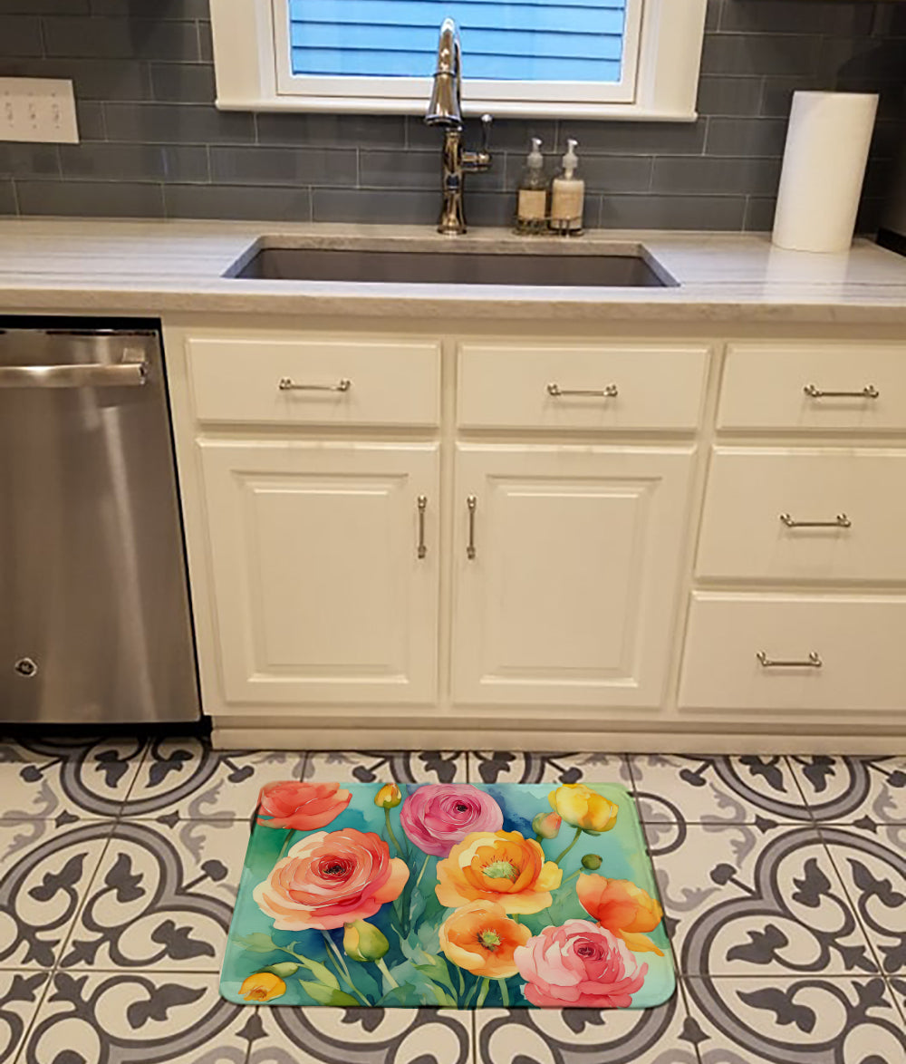 Memory Foam Kitchen Mat featuring breed specific Ranunculus artwork. Transform your floor into a work of art with Caroline's Treasures' Memory Foam Mat. This mat offers not only a stunning visual appeal but also a luxurious, plush feel that's incredibly comfortable to the touch. It's a versatile, machine-washable mat designed for both bath and kitchen use, ensuring you experience the best in comfort and convenience. Care Instructions: Maintaining this memory foam mat is a breeze. Simply follow the care instructions on the product tag. It's recommended to wash in cold water and dry on a low-temperature setting in the dryer. This ensures the mat retains its quality and longevity, allowing you to enjoy its beauty and comfort for a long time. Caroline's Treasures' Memory Foam Mat Machine Washable is the perfect blend of artistry, comfort, and practicality, making it a standout addition to any space. Upgrade your home decor with this versatile and stylish mat today.