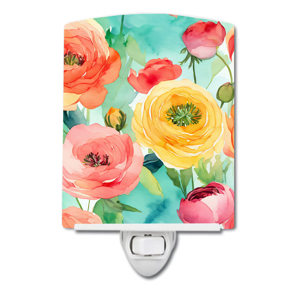 Ranunculus in Watercolor Ceramic Night Light