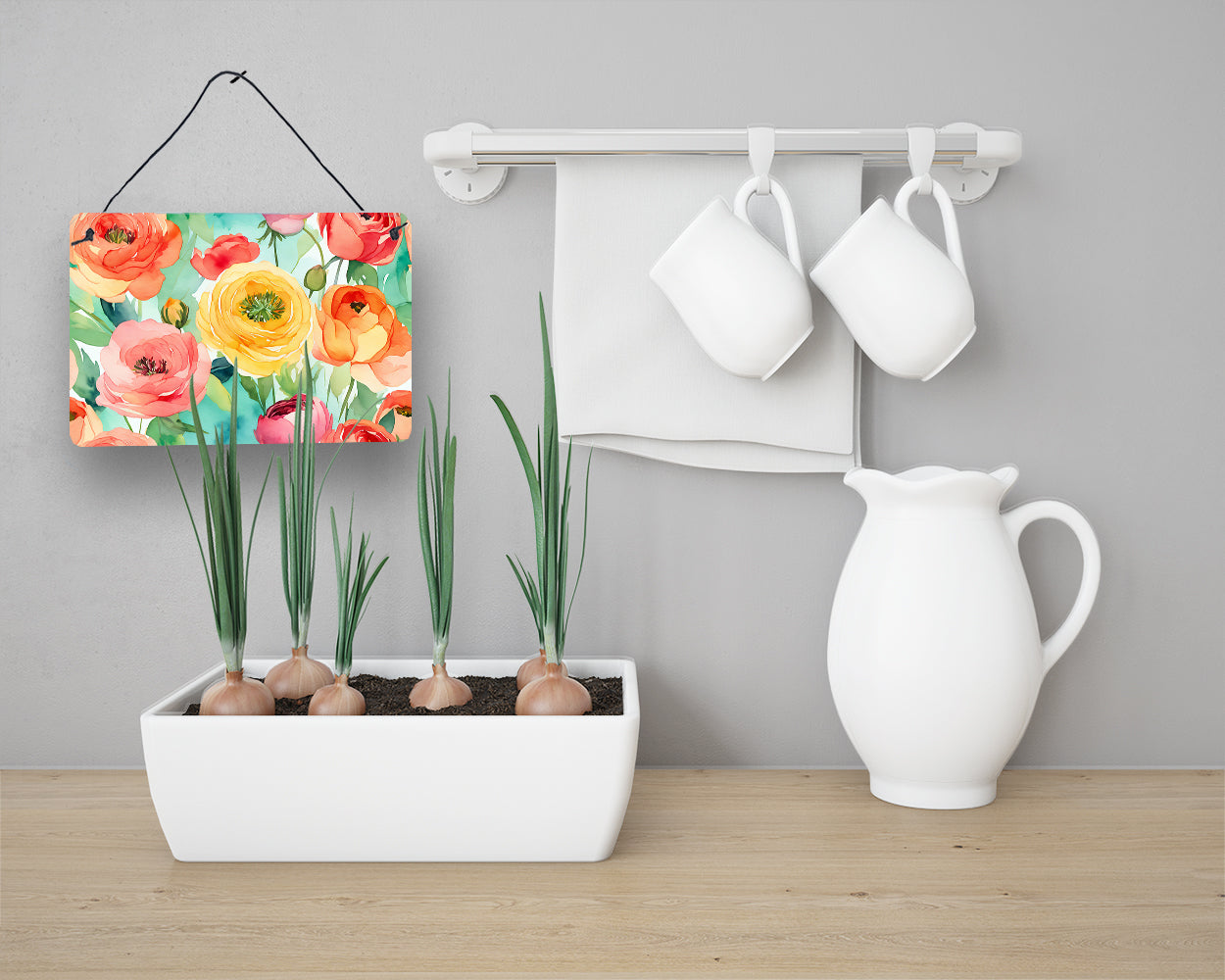 Wall or Door Hanging Prints featuring breed specific Ranunculus artwork. Add a splash of color and artistic flair to any indoor or outdoor space with our Aluminum Artwork Prints. These unique prints, featuring full-color, multicolor designs, provide a versatile decorative touch that can enhance a kitchen, bathroom, office, outdoor patio, or even the front door area. Each print measures 8 inches by 12 inches, making it the perfect size to catch the eye without overwhelming your space. Constructed with durability in mind, these prints can be placed outdoors and withstand direct sunlight for a significant amount of time before any fading begins. Designed for easy installation, each print features a black hanging rope and has a lightweight profile. This allows for quick hanging with just about any nail or screw. For safety and aesthetic appeal, the print's corners are gently rounded. The back of the print showcases a brushed silver color for an added touch of elegance. Rust and fade-resistant, these Aluminum Artwork Prints are not only beautiful but are also built to last. Elevate your space with these stunning prints, crafted with care and artistic passion.