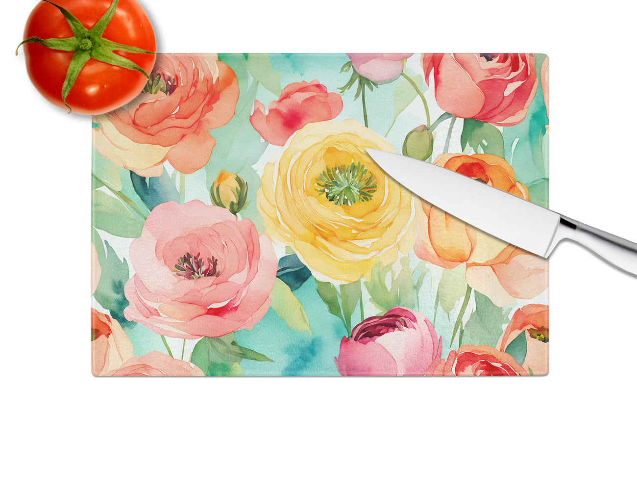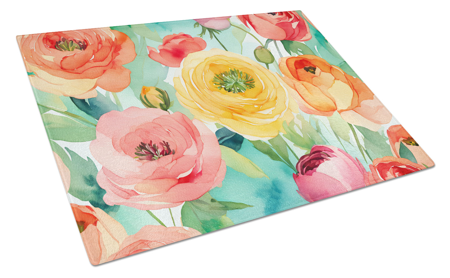 Ranunculus in Watercolor Glass Cutting Board