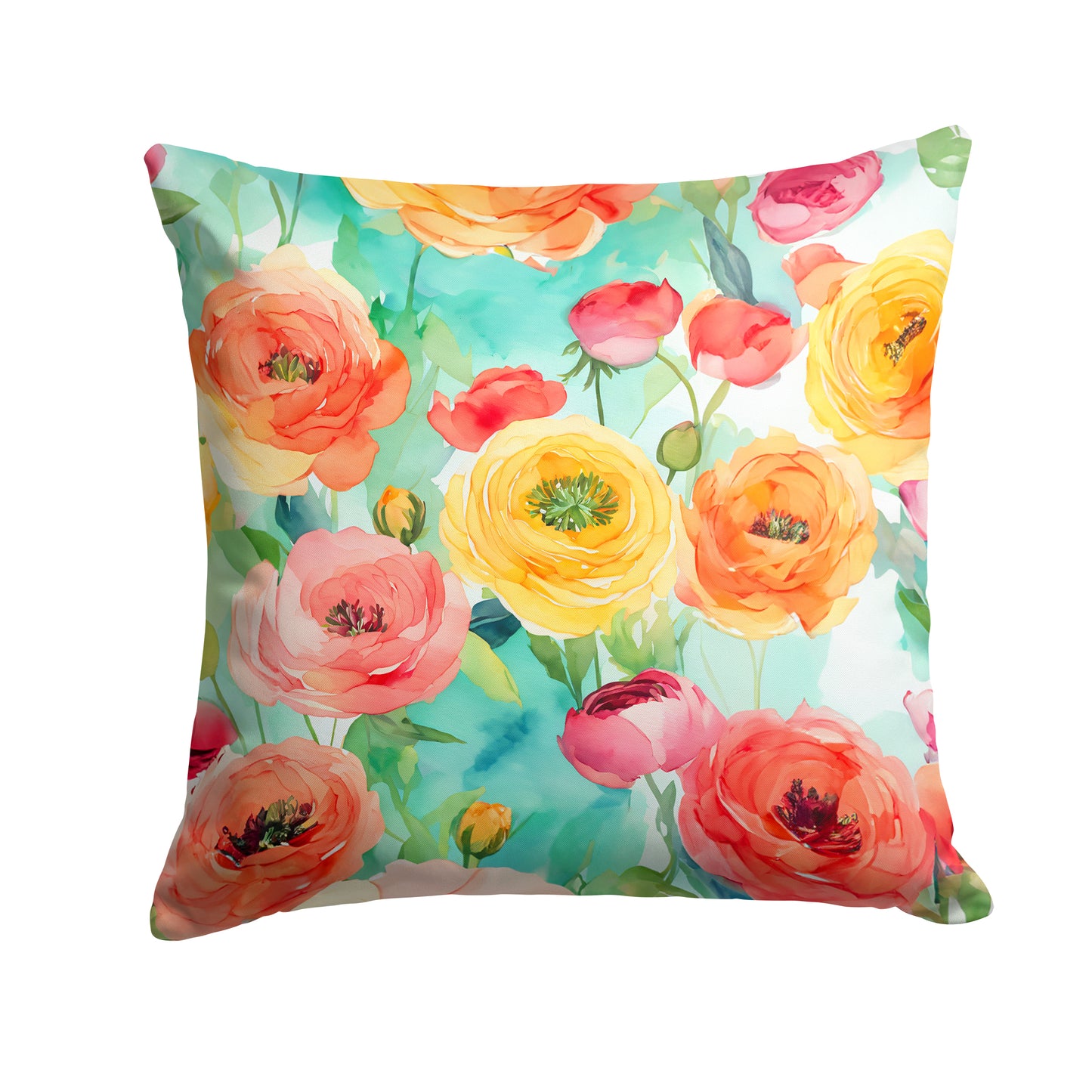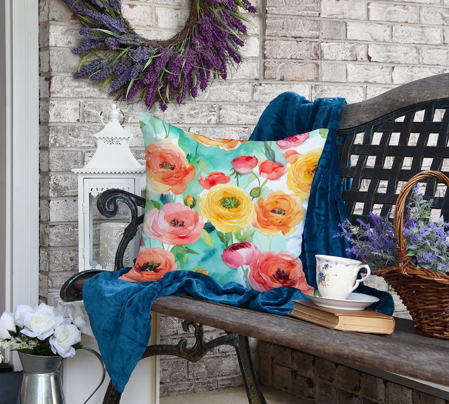 Throw Pillow featuring breed specific Ranunculus artwork. Revitalize your outdoor or indoor living space with Caroline's Treasures 18x18 Fabric Decorative Pillow. With a generously sized dimension of approximately 18 inches by 18 inches, this pillow makes a comfortable and aesthetic addition to any seating area. Made from a unique, water-resistant material developed by Caroline's Treasures, the pillow sham is 100% polyester fabric that's durable and ready to weather any condition. Its vibrant, full-color artwork will not fade over time as it is dyed with color-fast dyes. Whether you place it on your patio furniture, porch, veranda, or indoor couch, its soft canvas fabric ensures a cozy experience. The pillow is handcrafted in the United States, featuring a sham created from three pieces of fabric and a polyester insert for enduring shape and overstuffed comfort. Despite being robustly built to endure the outdoors, it is as soft and snug as your favorite indoor cushions. Please note, as all our pillows are handmade, sizes may vary slightly, adding to the charm of this unique decorative item.