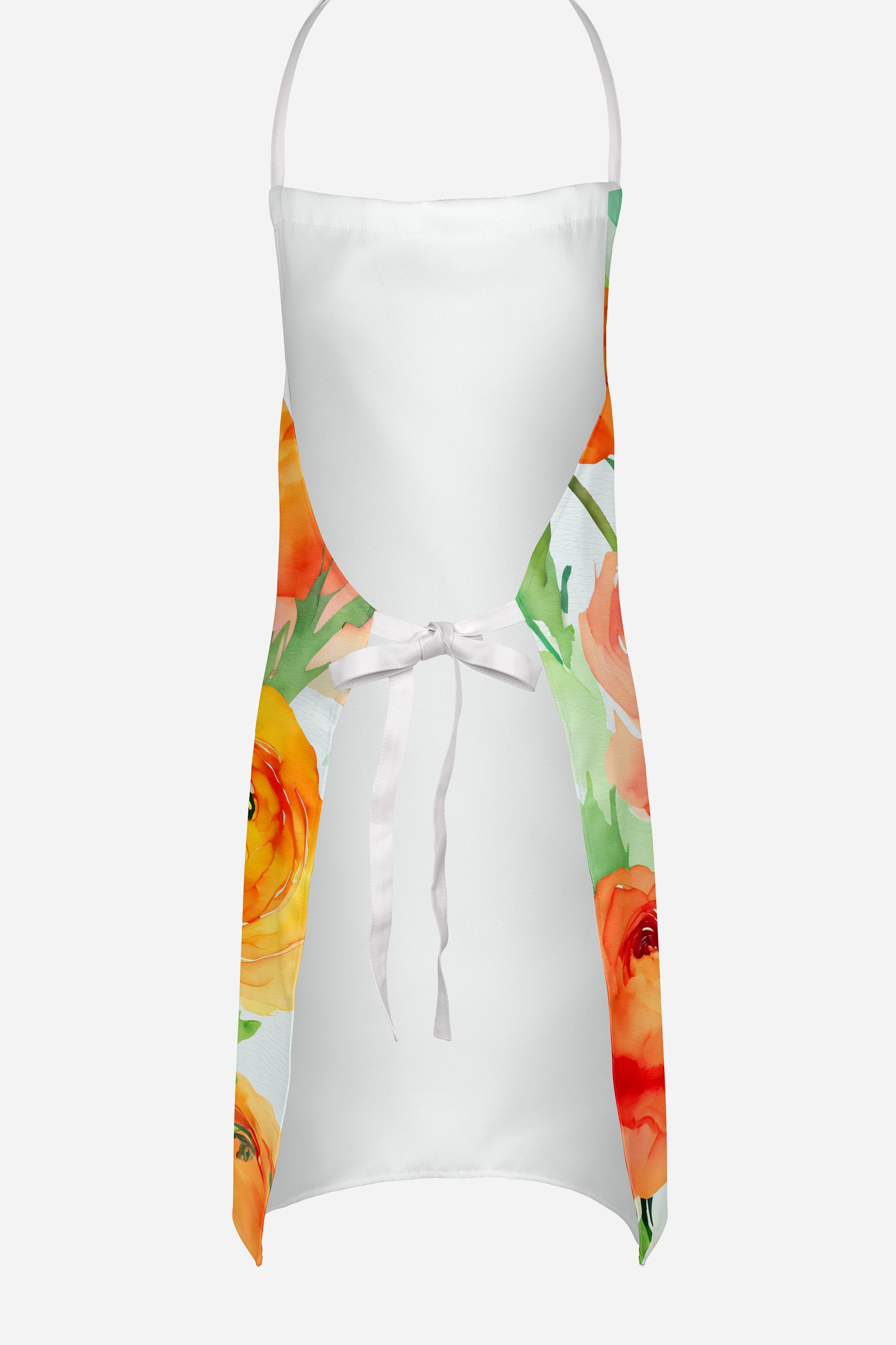 Apron featuring breed specific Ranunculus artwork. Elevate your cooking, baking, and grilling experiences with our versatile Kitchen or BBQ Apron. This Bib Style apron isn't just limited to culinary activities - it also serves as an excellent baking apron, artist apron, server apron, gardening apron, or even a dog grooming apron. The apron showcases vibrant full-color artwork contributed by one of our talented artists, bringing a dash of style to your daily tasks. With dimensions of approximately 27"W x 30"H, it provides ample coverage to protect your clothing from spills and splashes. Our apron is meticulously crafted from 100% Ultra Spun Polyester, known for its durability and lightweight nature. The apron comes with white tie straps, ensuring a comfortable and adjustable fit for all. It's a perfect choice for kitchen apron enthusiasts, whether you are a woman or a man. Designed for easy maintenance, this apron is fully machine washable. The quick-drying polyester material actively reduces staining, keeping your apron looking fresh and new for longer. Our beautifully designed apron isn't just a functional kitchen accessory - it's a fashion statement in the culinary world!