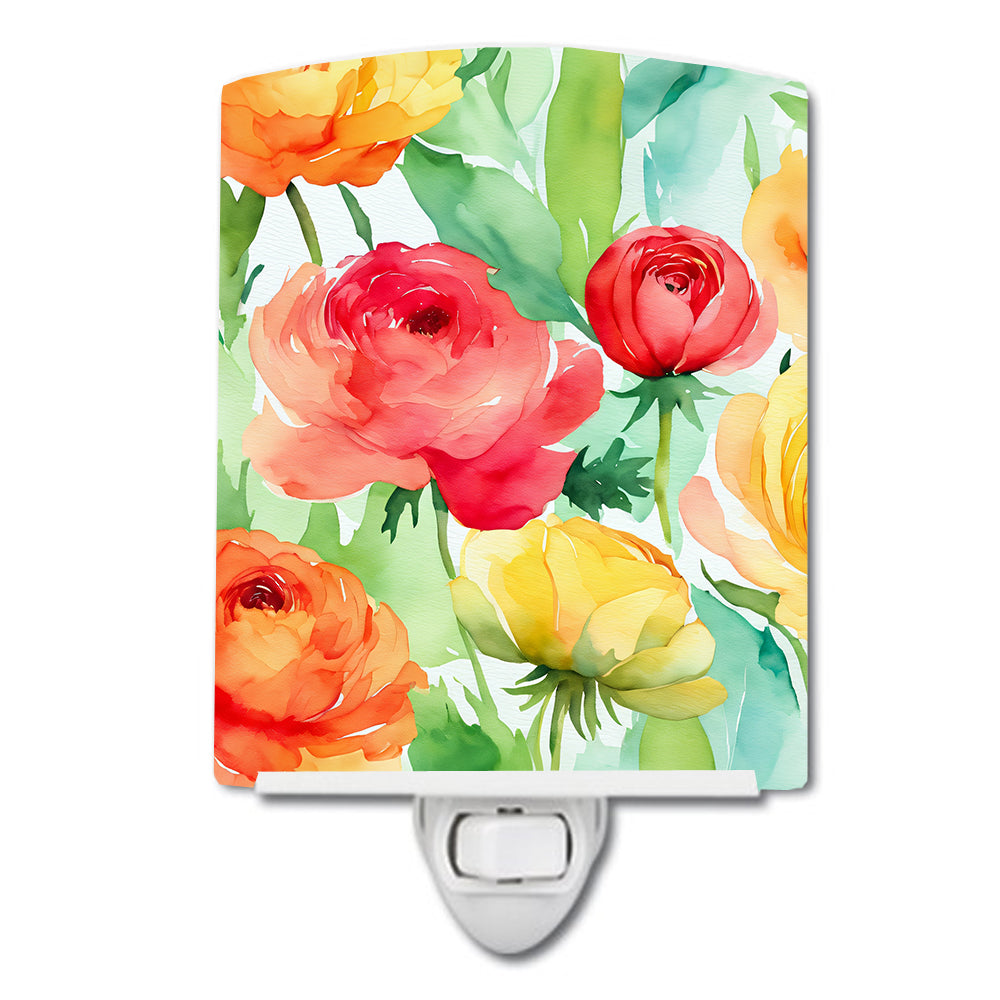 Ranunculus in Watercolor Ceramic Night Light