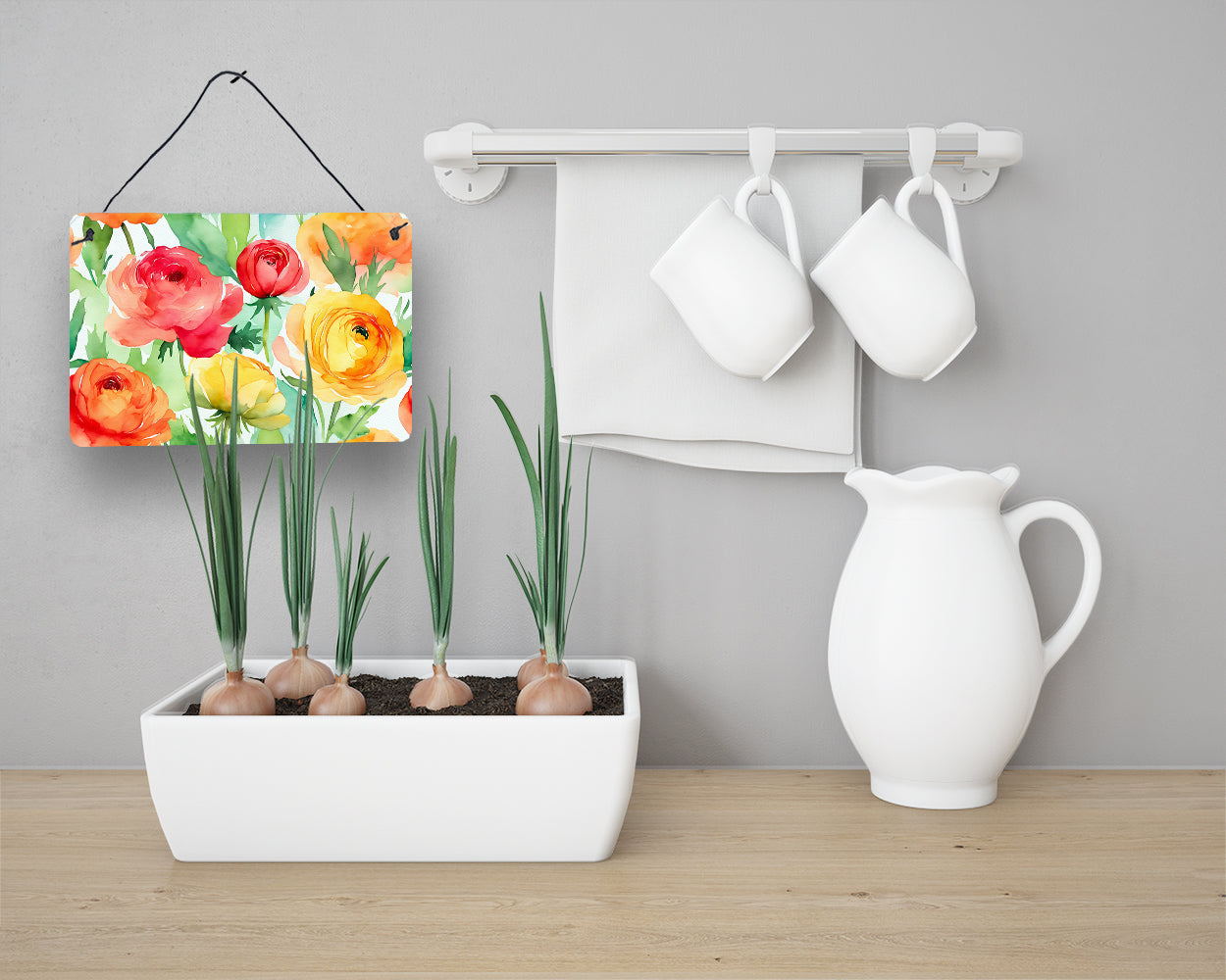 Wall or Door Hanging Prints featuring breed specific Ranunculus artwork. Add a splash of color and artistic flair to any indoor or outdoor space with our Aluminum Artwork Prints. These unique prints, featuring full-color, multicolor designs, provide a versatile decorative touch that can enhance a kitchen, bathroom, office, outdoor patio, or even the front door area. Each print measures 8 inches by 12 inches, making it the perfect size to catch the eye without overwhelming your space. Constructed with durability in mind, these prints can be placed outdoors and withstand direct sunlight for a significant amount of time before any fading begins. Designed for easy installation, each print features a black hanging rope and has a lightweight profile. This allows for quick hanging with just about any nail or screw. For safety and aesthetic appeal, the print's corners are gently rounded. The back of the print showcases a brushed silver color for an added touch of elegance. Rust and fade-resistant, these Aluminum Artwork Prints are not only beautiful but are also built to last. Elevate your space with these stunning prints, crafted with care and artistic passion.