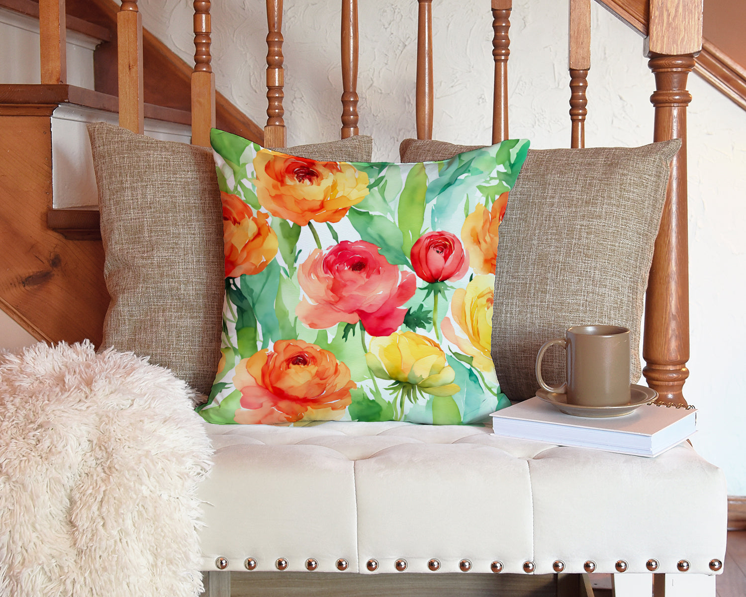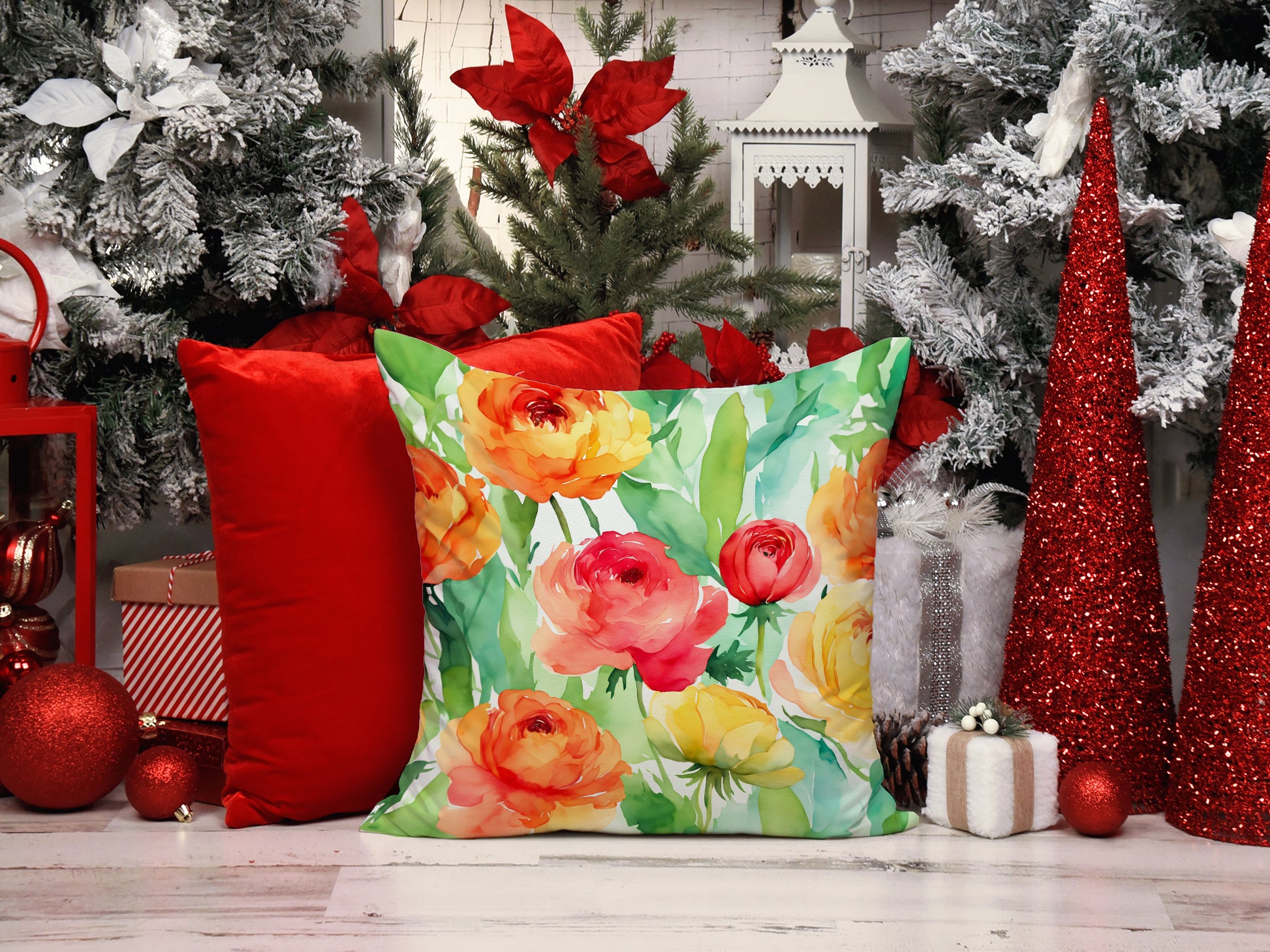 Ranunculus in Watercolor Throw Pillow