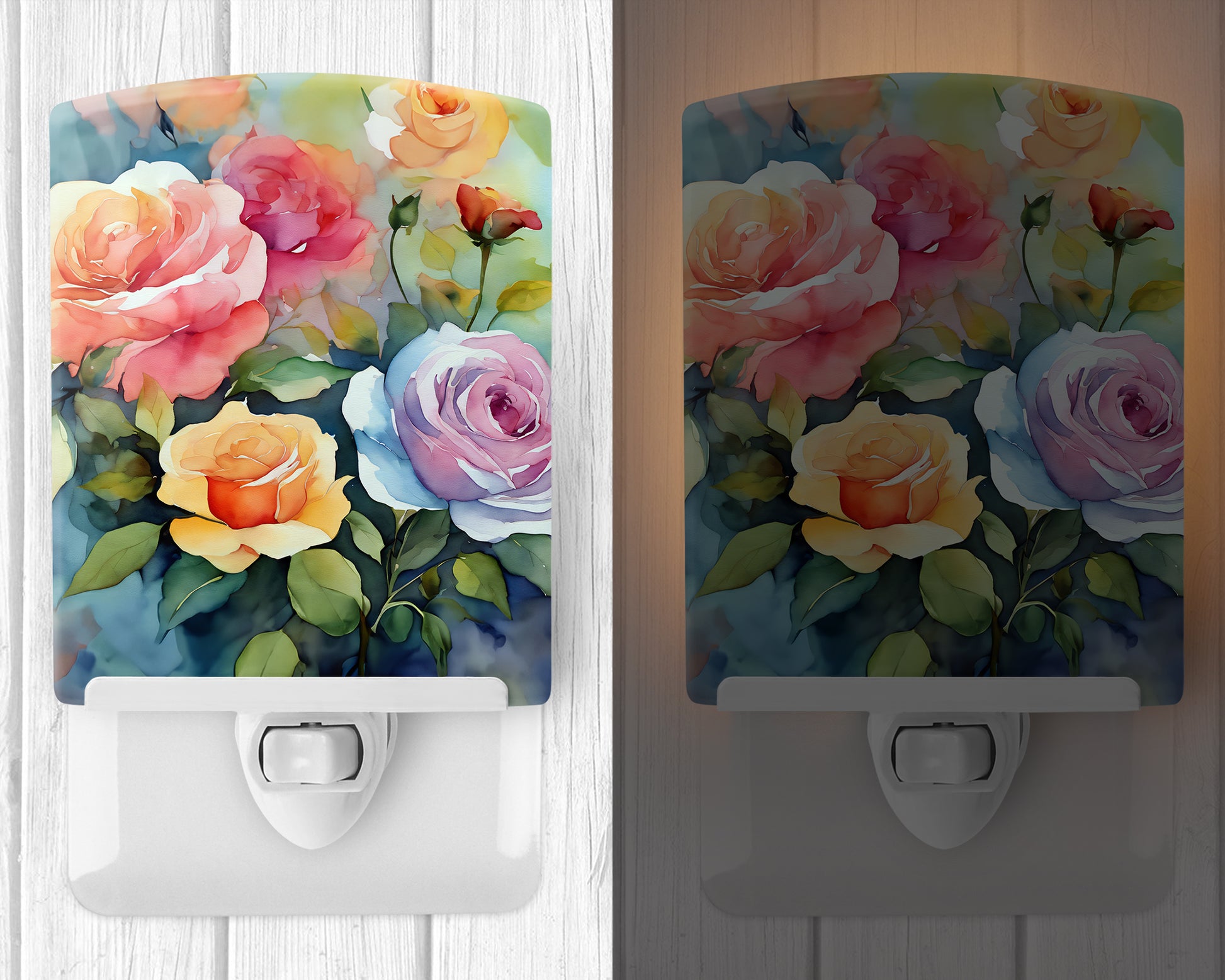 Ceramic Night Light featuring breed specific Roses artwork. Introduce a splash of artistic flair and subtle illumination to your space with the Decorative Ceramic Night Light from Caroline's Treasures. Perfect for any room, this night light seamlessly blends functionality with an aesthetic appeal, offering a stylish solution to brighten up dark corners of your home or office. Boasting a six-inch high by four-inch wide ceramic tile at the front, it showcases vivid, full-color artwork from distinguished artists, transforming a simple utility into a vibrant art piece. The artwork is securely encased in a robust metal holder, ensuring durability and longevity. Two screws are provided to firmly affix the tile into the holder. The holder extends three inches deep, housing an included bulb that emits a soft, welcoming glow. This product meets all safety standards, as evidenced by its UL approval. Proudly made in the United States from imported components, this Decorative Ceramic Night Light is not just a functional device; it's a statement piece that enhances the ambiance of your surroundings.