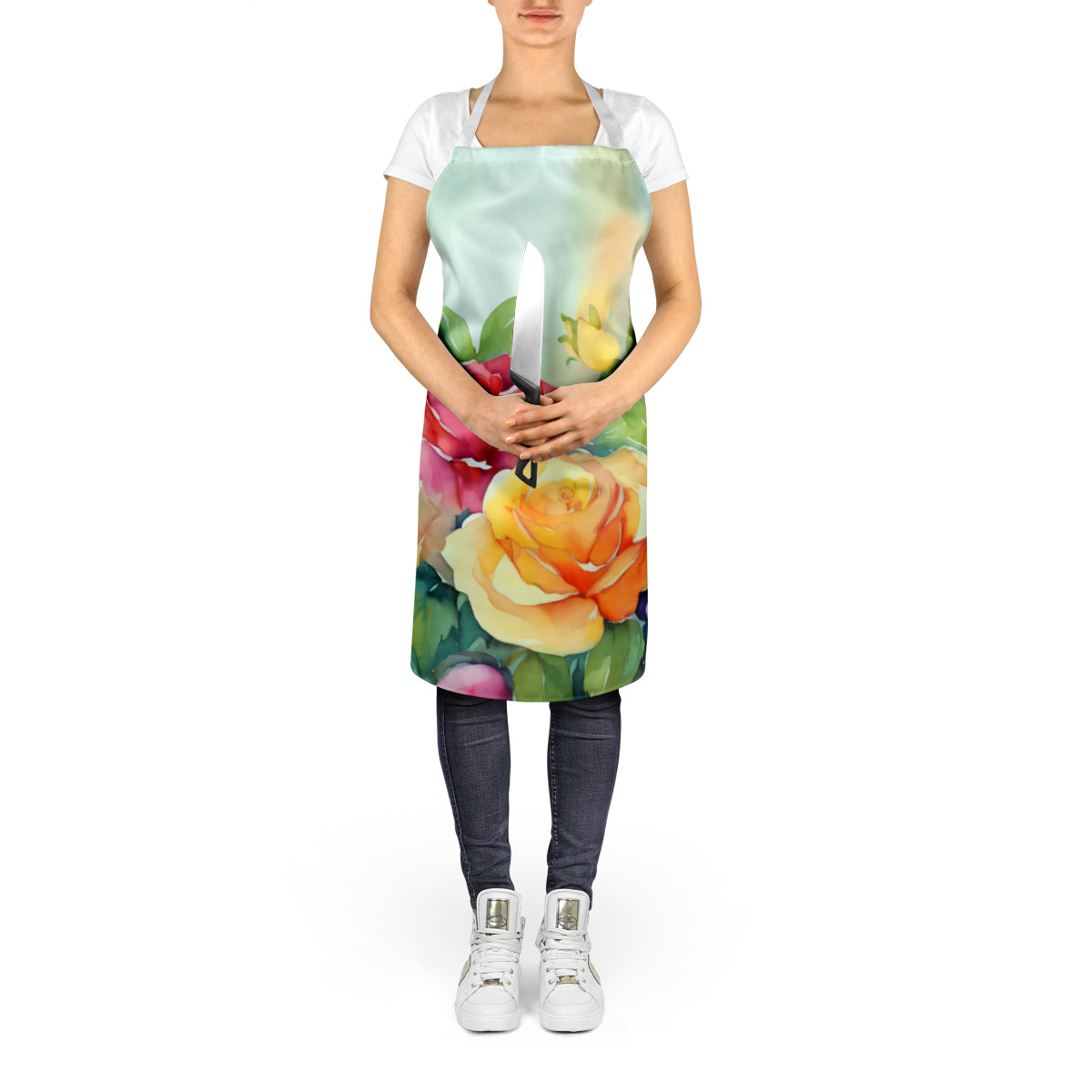 Apron featuring breed specific Roses artwork. Elevate your cooking, baking, and grilling experiences with our versatile Kitchen or BBQ Apron. This Bib Style apron isn't just limited to culinary activities - it also serves as an excellent baking apron, artist apron, server apron, gardening apron, or even a dog grooming apron. The apron showcases vibrant full-color artwork contributed by one of our talented artists, bringing a dash of style to your daily tasks. With dimensions of approximately 27"W x 30"H, it provides ample coverage to protect your clothing from spills and splashes. Our apron is meticulously crafted from 100% Ultra Spun Polyester, known for its durability and lightweight nature. The apron comes with white tie straps, ensuring a comfortable and adjustable fit for all. It's a perfect choice for kitchen apron enthusiasts, whether you are a woman or a man. Designed for easy maintenance, this apron is fully machine washable. The quick-drying polyester material actively reduces staining, keeping your apron looking fresh and new for longer. Our beautifully designed apron isn't just a functional kitchen accessory - it's a fashion statement in the culinary world!