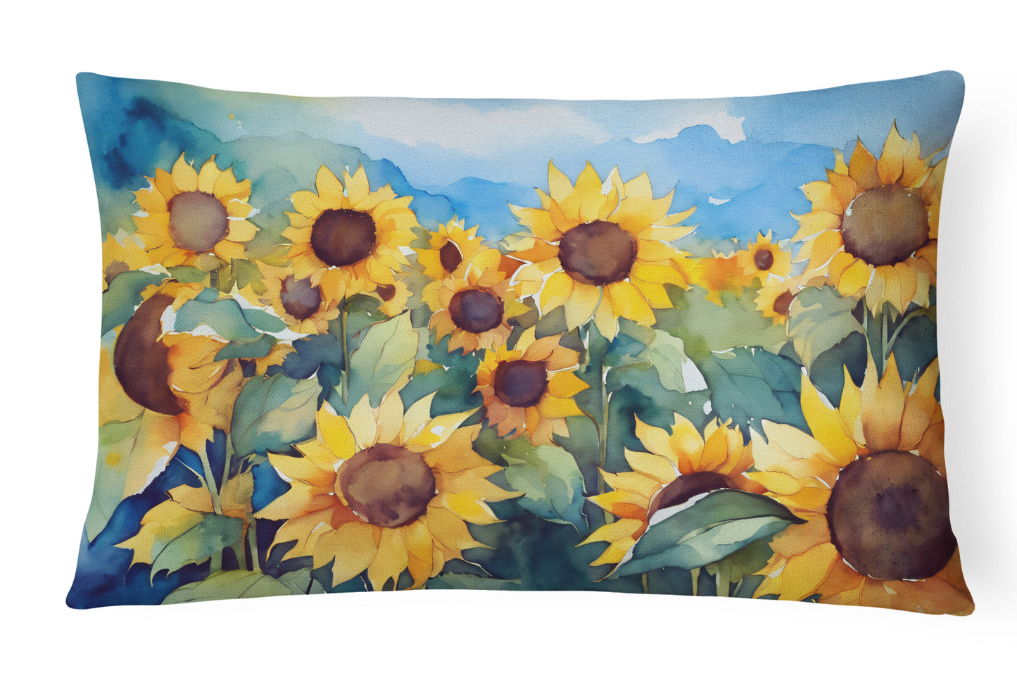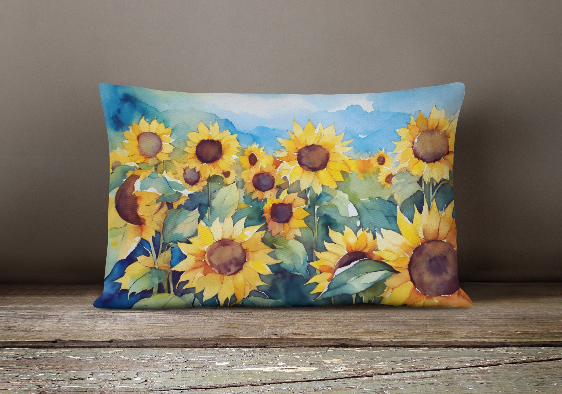 Throw Pillow featuring breed specific Sunflowers artwork. Embrace the fusion of comfort and style with Caroline's Treasures Fabric Decorative Pillow. This 12x16 inch outdoor pillow is designed to complement your patio furniture, adding a splash of color and artistry to your outdoor setting. Constructed with a 100% Polyester Fabric pillow sham filled with a plush pillow form, this cushion is as comfortable as it is durable. Our outdoor pillow utilizes a novel fabric, meticulously woven for enhanced water resistance. This soft canvas material is equally suited for your indoor couch as well as outdoor settings such as the patio, porch, or veranda. To ensure enduring vibrance, we employ colorfast dyes resistant to fading even when subjected to weather elements. The making of this pillow involves the delicate sewing together of three fabric pieces to create a sham, into which a polyester insert is carefully placed. The result is an overstuffed pillow that tenaciously holds its shape. With both the sham and the pillow insert crafted in the United States, these handmade pillows are a testament to superior local craftsmanship. Note that as these pillows are handmade, sizes may slightly vary, enhancing their unique appeal. Enjoy comfort in style with Caroline's Treasures Fabric Decorative Pillow.