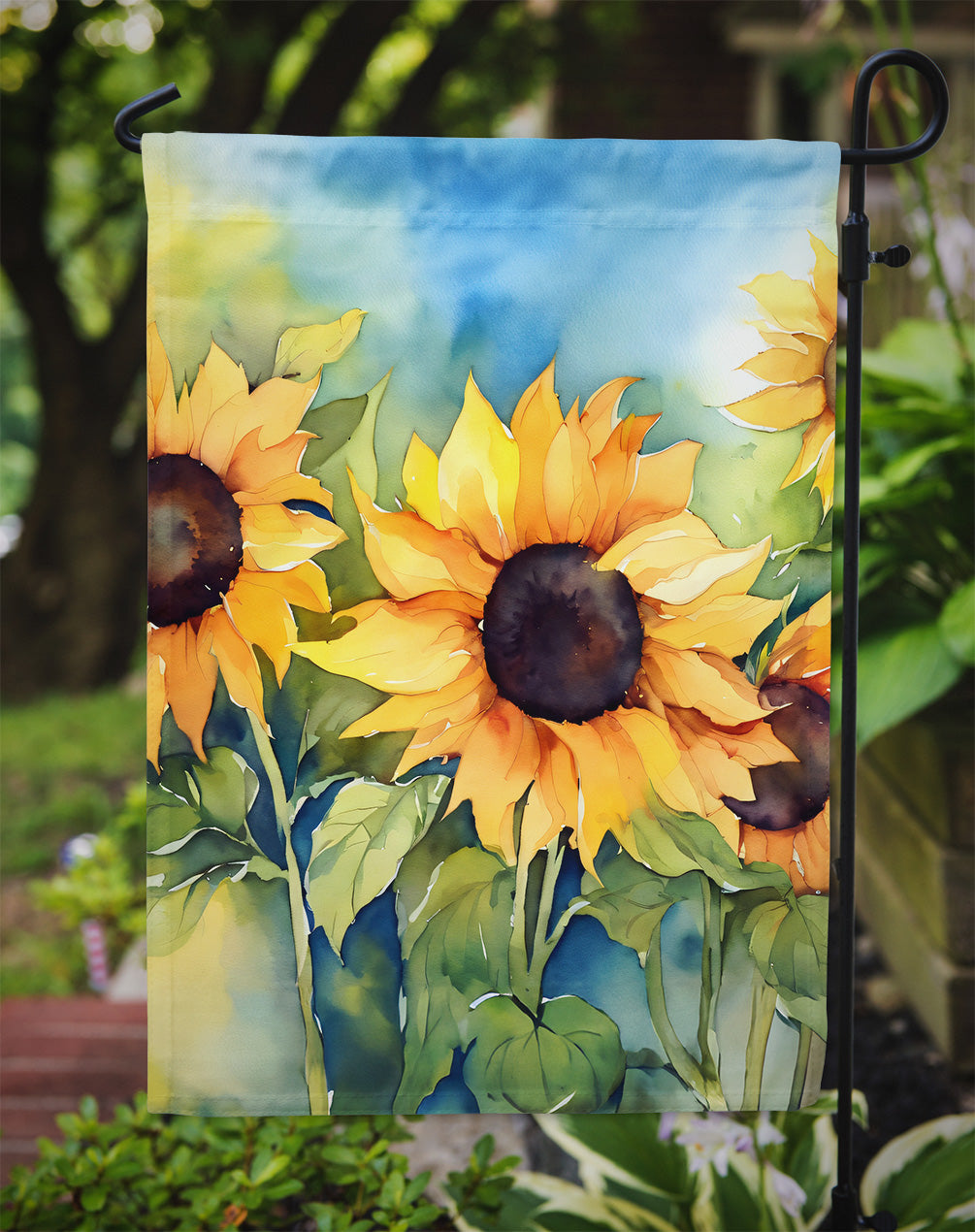 Garden Flag featuring breed specific Sunflowers artwork. Enhance the beauty of your garden, patio, or yard with Caroline's Treasures Decorative Garden Flag, proudly made in the USA. Crafted from two pieces of thick, double-sided polyester fabric, this 2-ply garden flag is designed to withstand various weather conditions, making it water-resistant and weatherproof. Featuring correctly readable words on both sides, this garden flag offers a delightful visual experience from any angle. With its heavier weight, it stands out among other garden flags, ensuring stability and durability even in wind, rain, and snow. Measuring approximately 11 1/4 inches by 15 1/2 inches, this flag allows you to personalize your outdoor decor. It comes with a 1 1/2-inch sleeve sewn in, allowing easy attachment to any standard garden flag stand or garden size porch hanger (sold separately). Make a statement in your outdoor space with Caroline's Treasures Decorative Garden Flag, a vibrant and high-quality flag that adds color and personality to your surroundings. Proudly made in the USA, it's a symbol of quality craftsmanship and attention to detail.