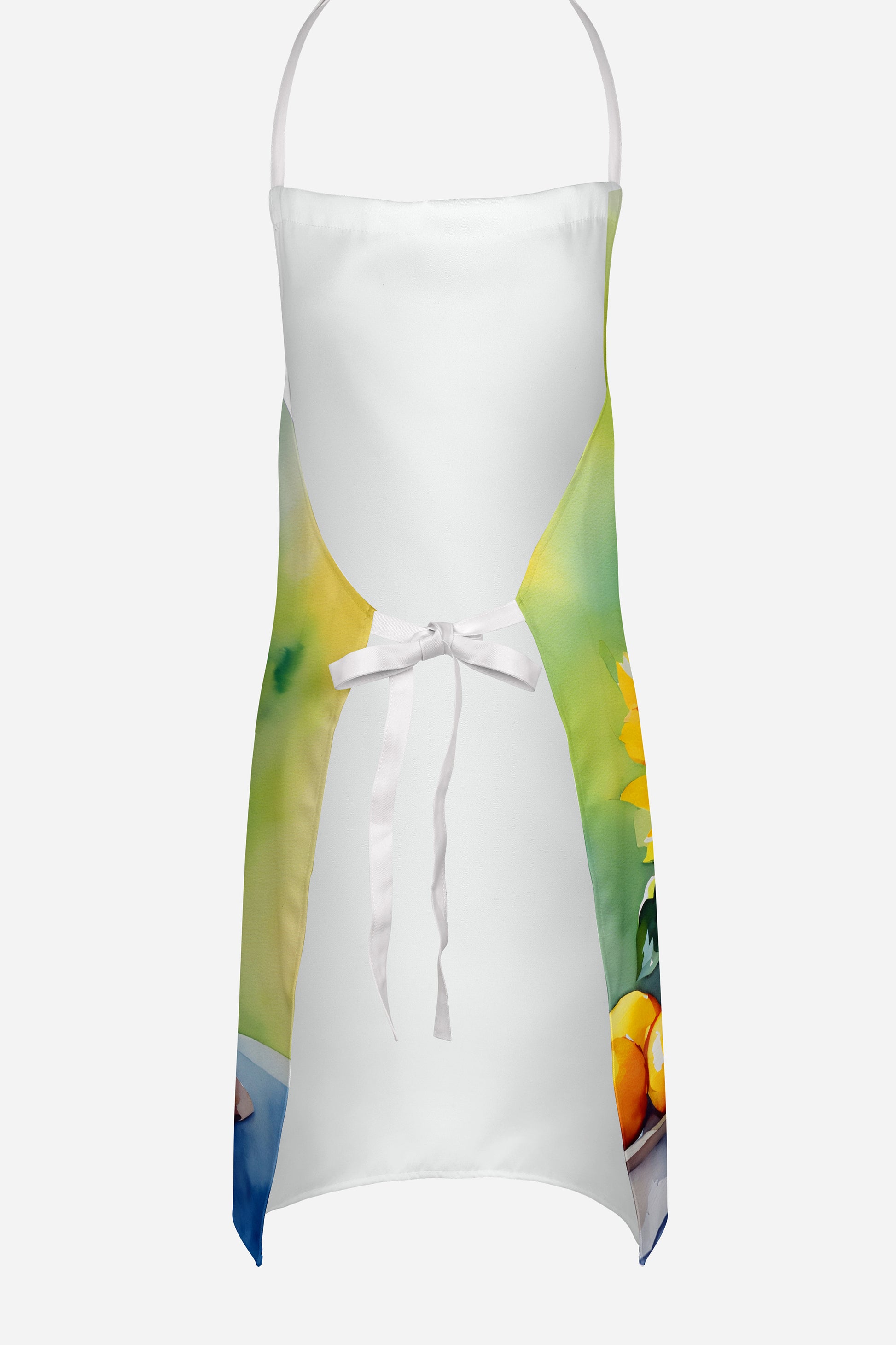 Apron featuring breed specific Sunflowers artwork. Elevate your cooking, baking, and grilling experiences with our versatile Kitchen or BBQ Apron. This Bib Style apron isn't just limited to culinary activities - it also serves as an excellent baking apron, artist apron, server apron, gardening apron, or even a dog grooming apron. The apron showcases vibrant full-color artwork contributed by one of our talented artists, bringing a dash of style to your daily tasks. With dimensions of approximately 27"W x 30"H, it provides ample coverage to protect your clothing from spills and splashes. Our apron is meticulously crafted from 100% Ultra Spun Polyester, known for its durability and lightweight nature. The apron comes with white tie straps, ensuring a comfortable and adjustable fit for all. It's a perfect choice for kitchen apron enthusiasts, whether you are a woman or a man. Designed for easy maintenance, this apron is fully machine washable. The quick-drying polyester material actively reduces staining, keeping your apron looking fresh and new for longer. Our beautifully designed apron isn't just a functional kitchen accessory - it's a fashion statement in the culinary world!