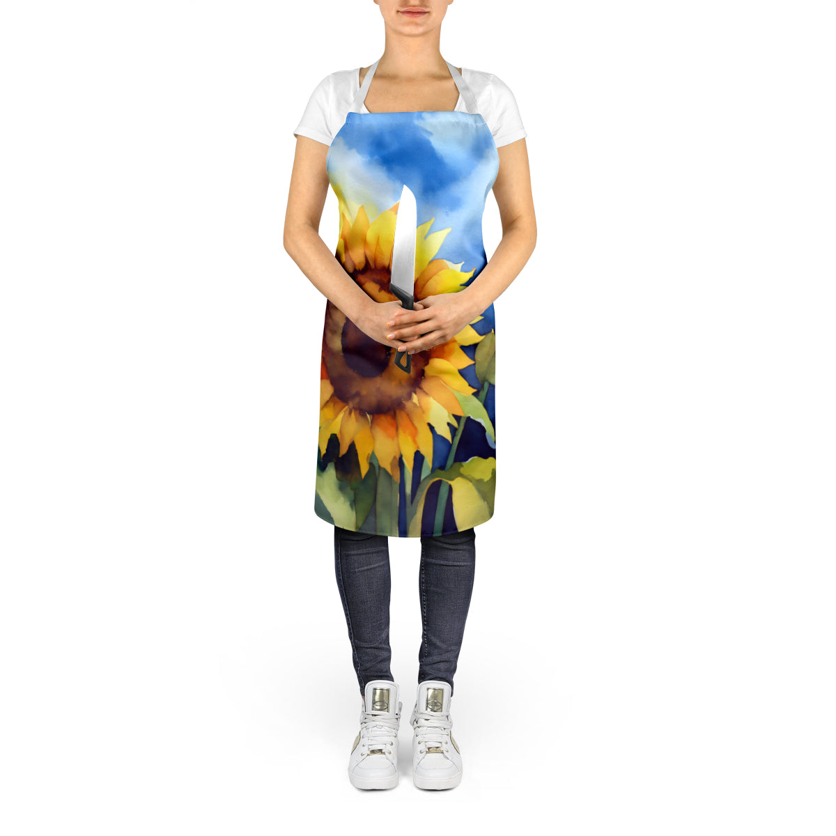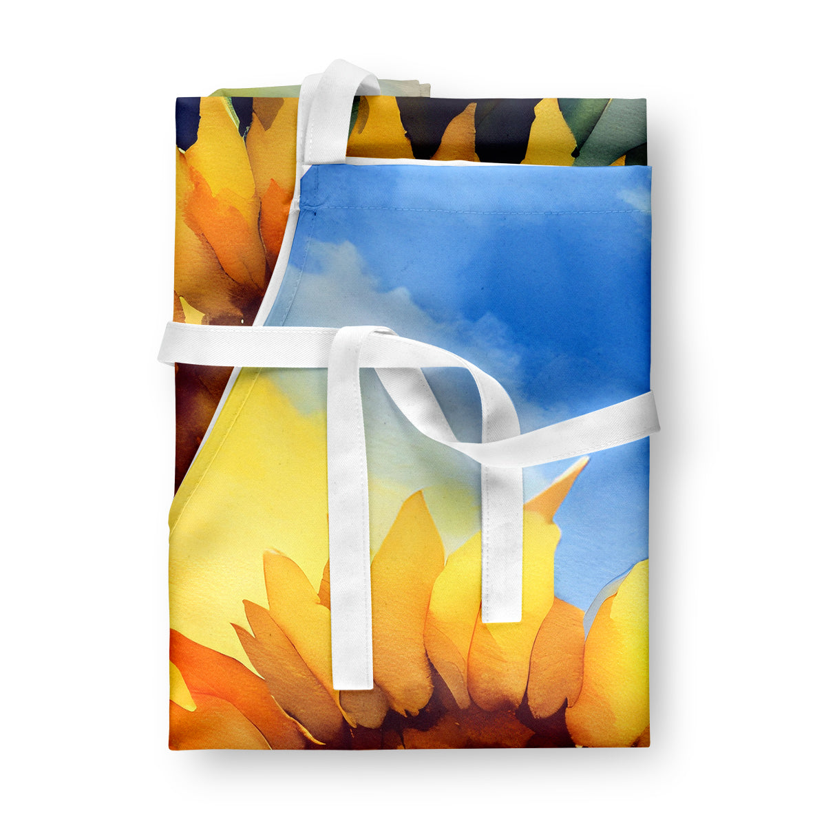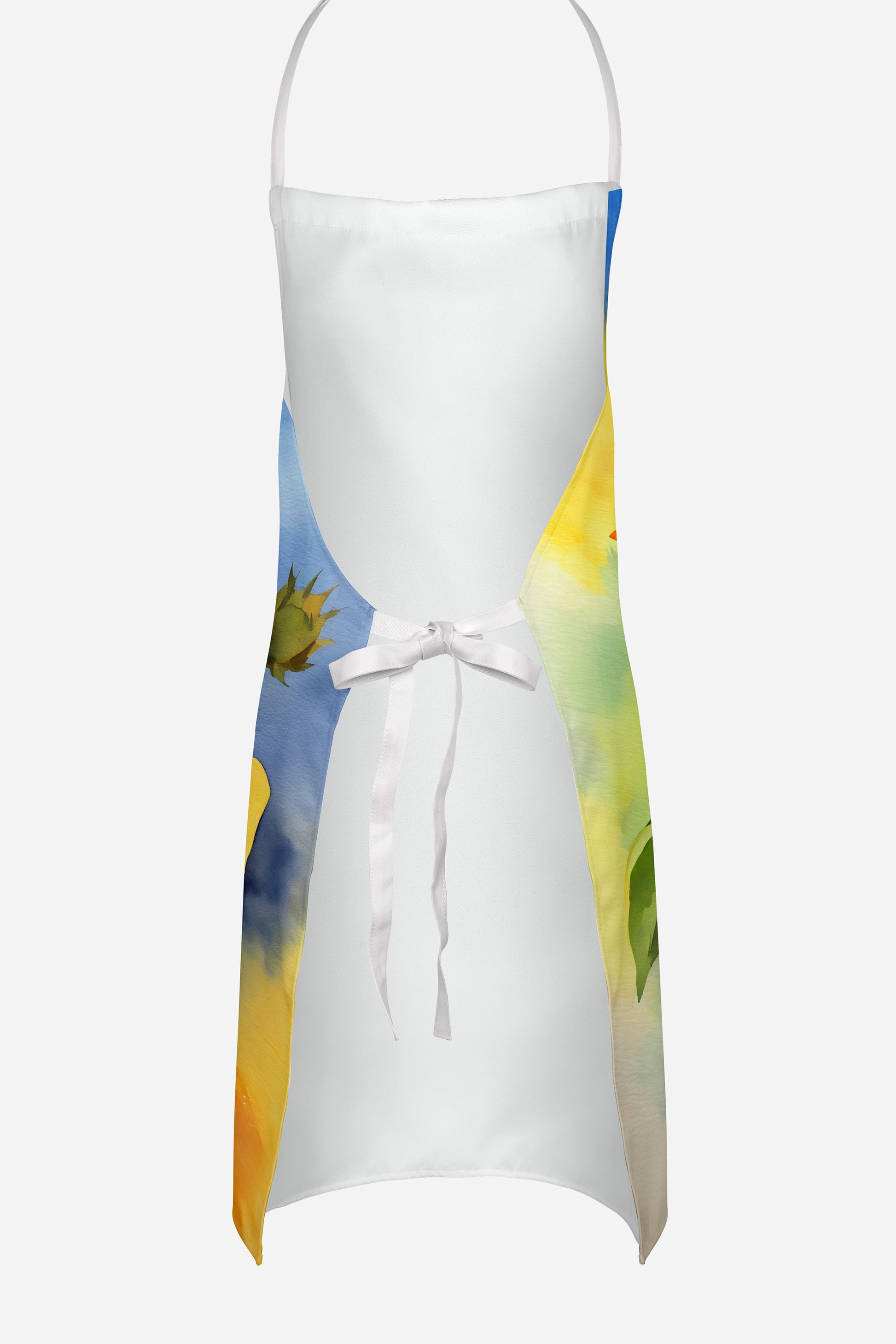 Apron featuring breed specific Sunflowers artwork. Elevate your cooking, baking, and grilling experiences with our versatile Kitchen or BBQ Apron. This Bib Style apron isn't just limited to culinary activities - it also serves as an excellent baking apron, artist apron, server apron, gardening apron, or even a dog grooming apron. The apron showcases vibrant full-color artwork contributed by one of our talented artists, bringing a dash of style to your daily tasks. With dimensions of approximately 27"W x 30"H, it provides ample coverage to protect your clothing from spills and splashes. Our apron is meticulously crafted from 100% Ultra Spun Polyester, known for its durability and lightweight nature. The apron comes with white tie straps, ensuring a comfortable and adjustable fit for all. It's a perfect choice for kitchen apron enthusiasts, whether you are a woman or a man. Designed for easy maintenance, this apron is fully machine washable. The quick-drying polyester material actively reduces staining, keeping your apron looking fresh and new for longer. Our beautifully designed apron isn't just a functional kitchen accessory - it's a fashion statement in the culinary world!