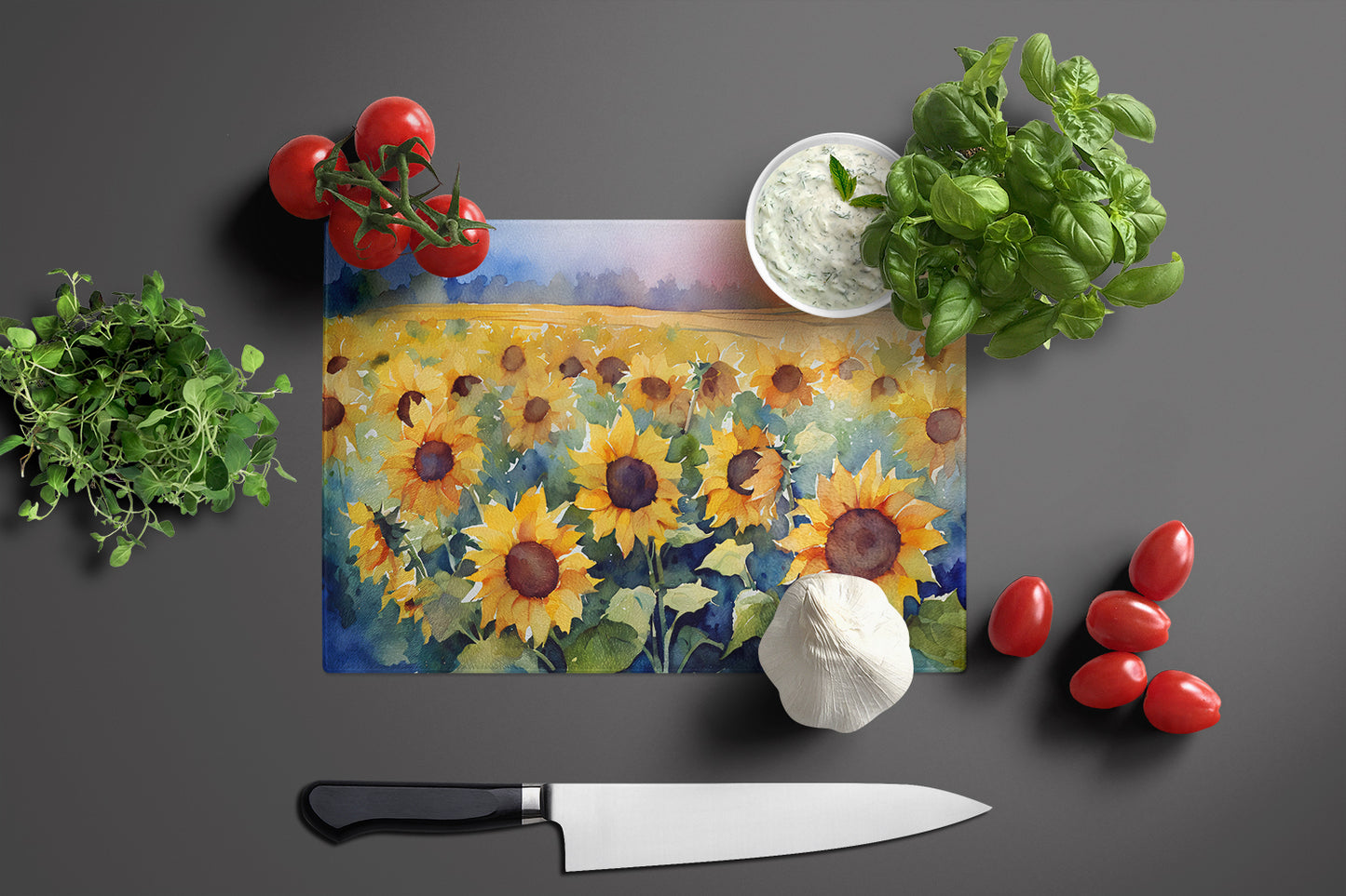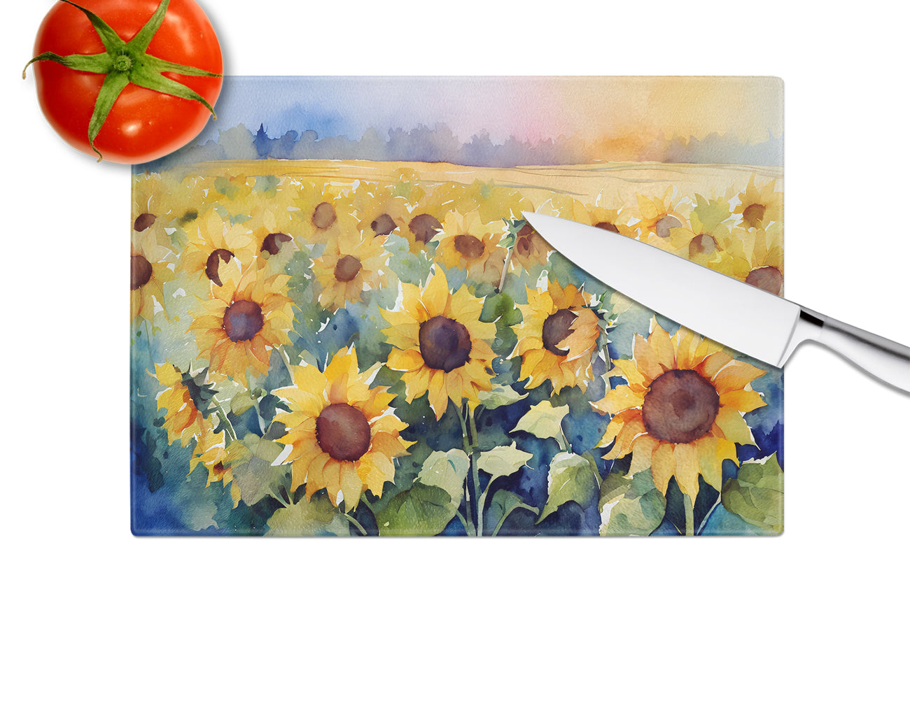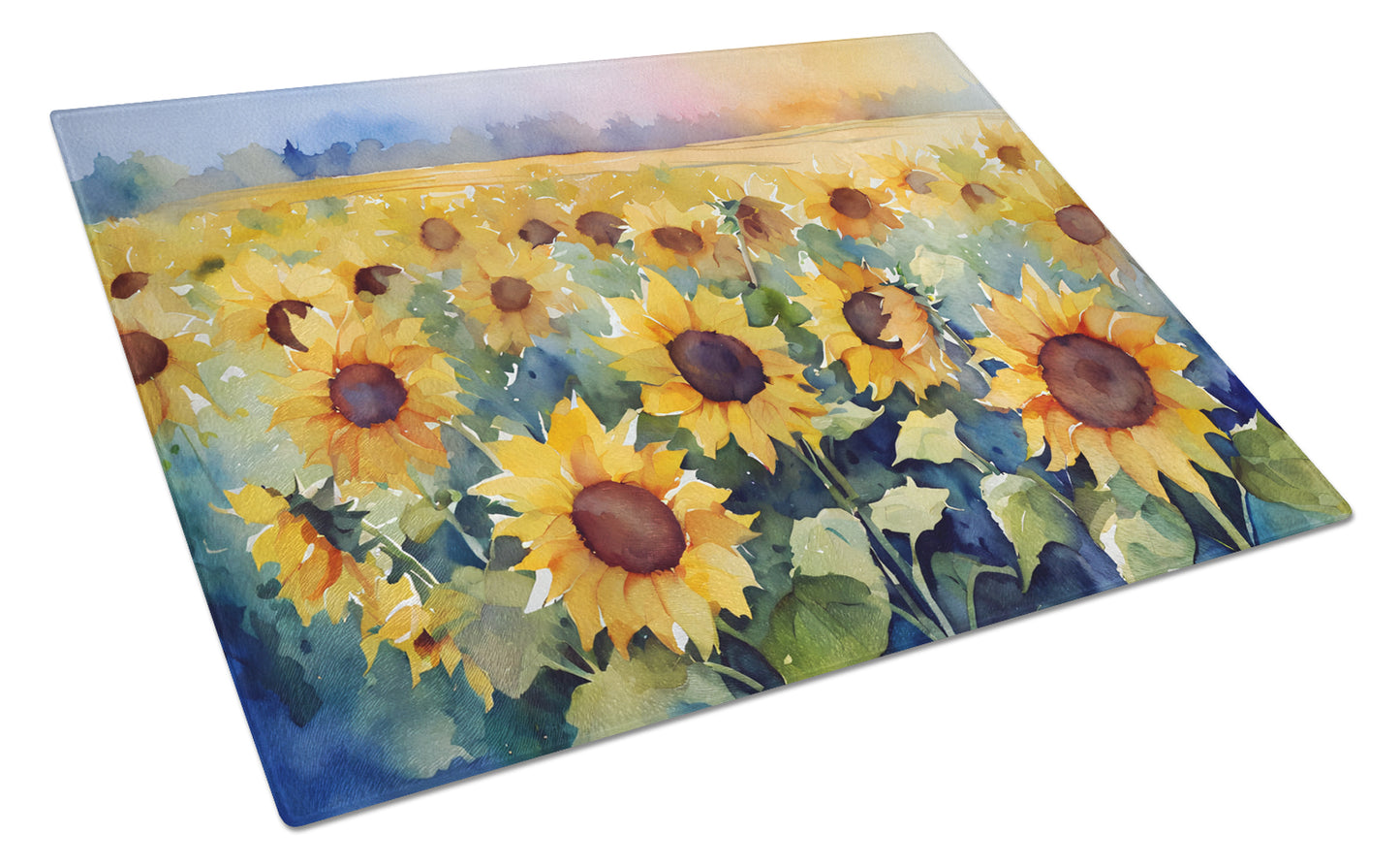Sunflowers in Watercolor Glass Cutting Board