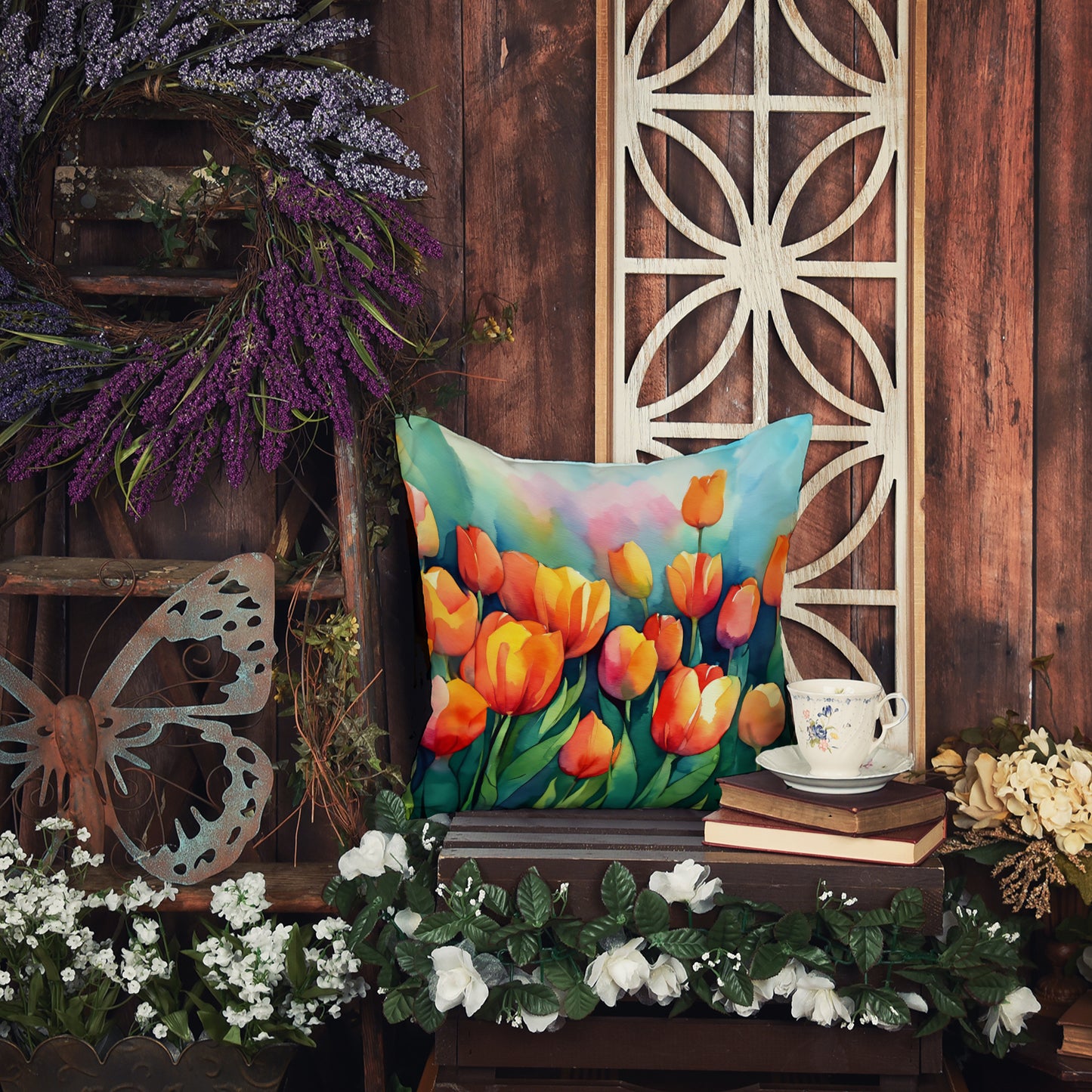 Throw Pillow featuring breed specific Tulips artwork. Add a touch of vibrancy and comfort to your outdoor seating with Caroline's Treasures Fabric Decorative Pillow. Measuring approximately 14 inches by 14 inches, this outdoor pillow is crafted to elevate the appeal of your patio furniture, infusing it with vivid color and artistic flair. The pillow includes a 100% Polyester Fabric sham filled with a quality pillow form to provide superior comfort. Innovatively made from our brand new material, specifically woven for its water resistance, this pillow is designed for durability. The soft canvas fabric offers versatility in use, fit for your indoor couch or your outdoor patio, porch, or veranda. The fabric is dyed with colorfast dyes built for resilience against weather conditions, ensuring the pillow retains its beauty over time. Constructed by sewing three fabric pieces to create a sham, the polyester insert is then nestled inside to form the pillow, resulting in an overstuffed pillow that maintains its shape. Both the sham and the pillow insert are proudly made in the United States. As the pillows are handcrafted, there may be minor variations in size, further enhancing their unique charm. Experience comfort in style with Caroline's Treasures Fabric Decorative Pillow.