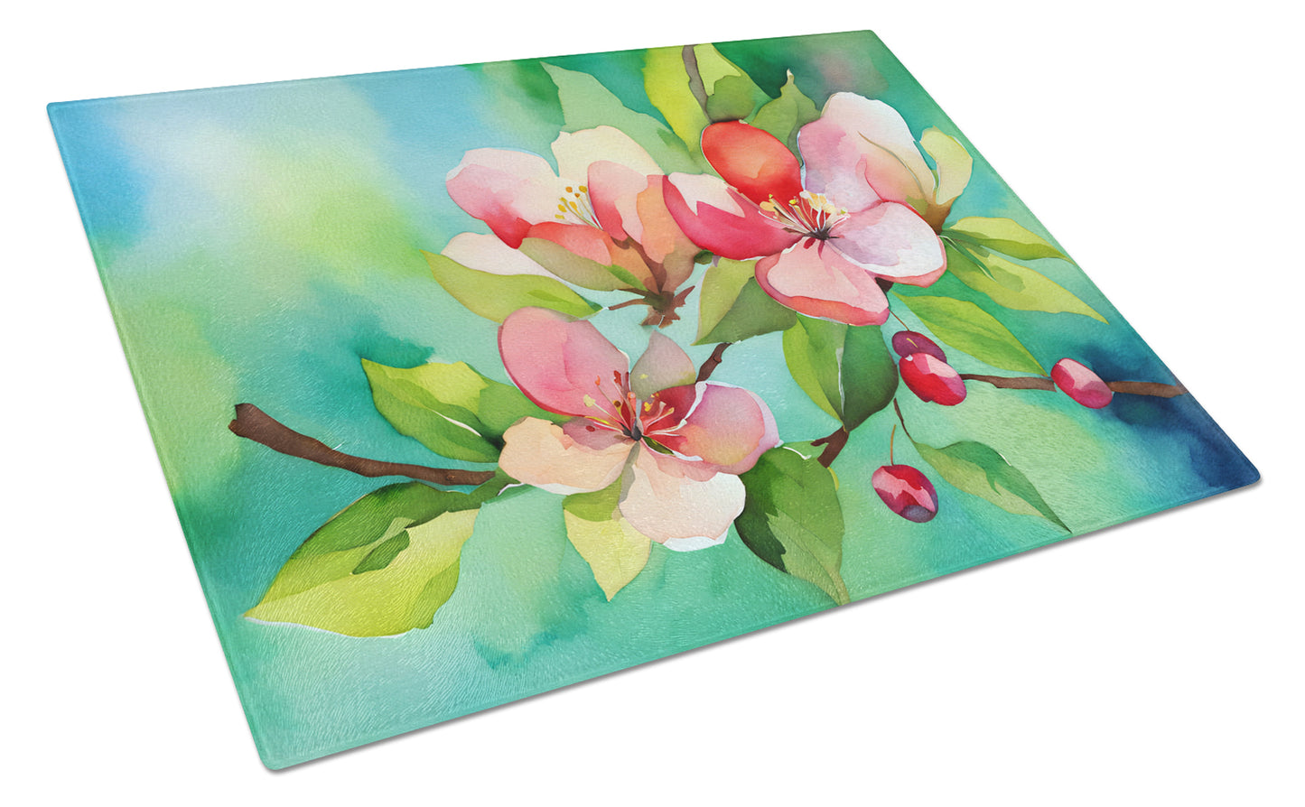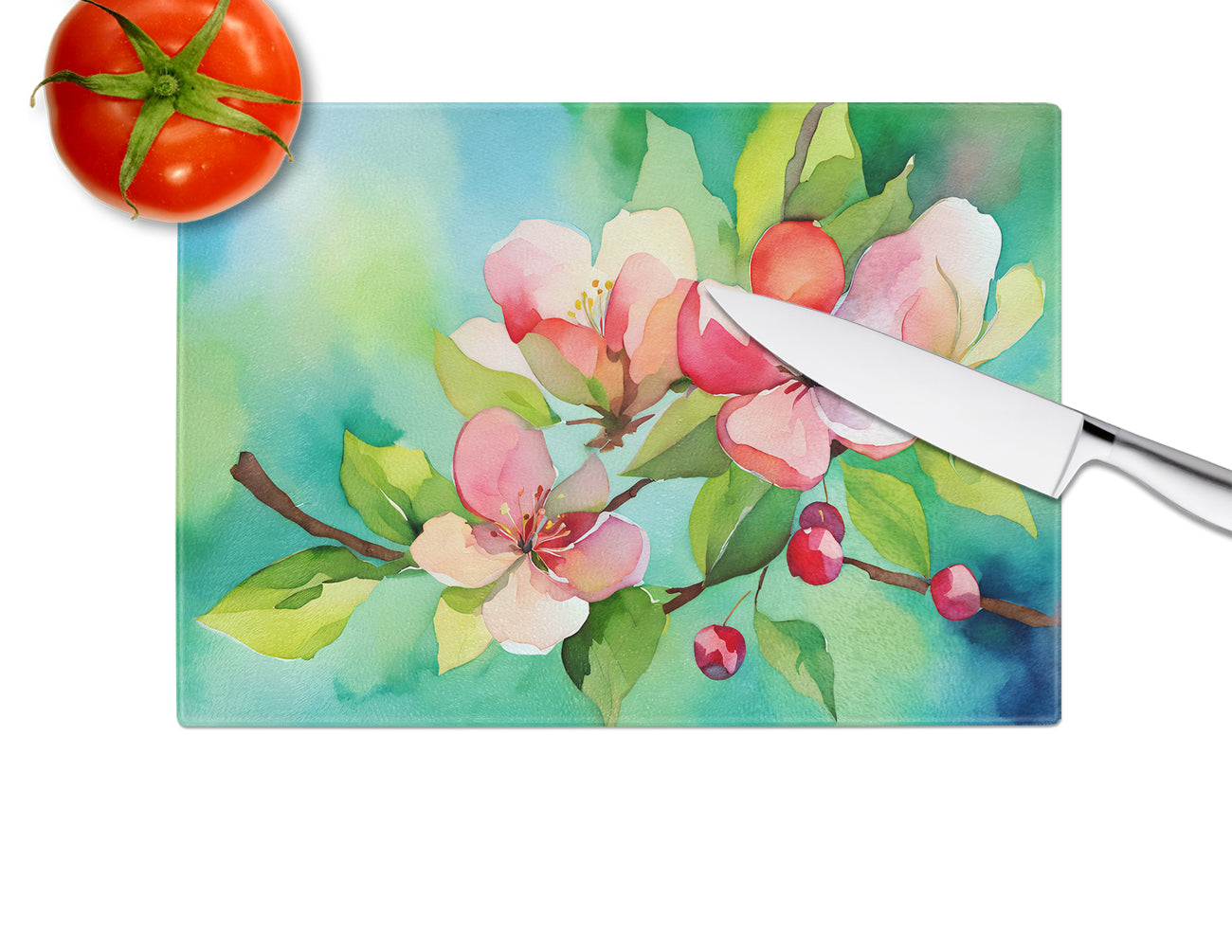 Arkansas Apple Blossom in Watercolor Glass Cutting Board