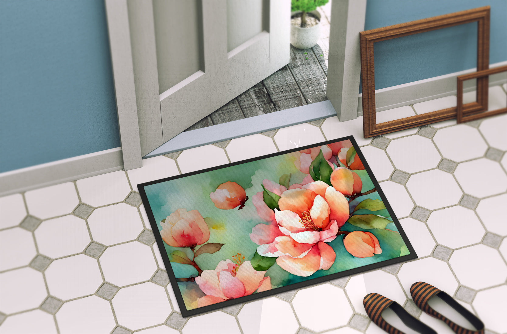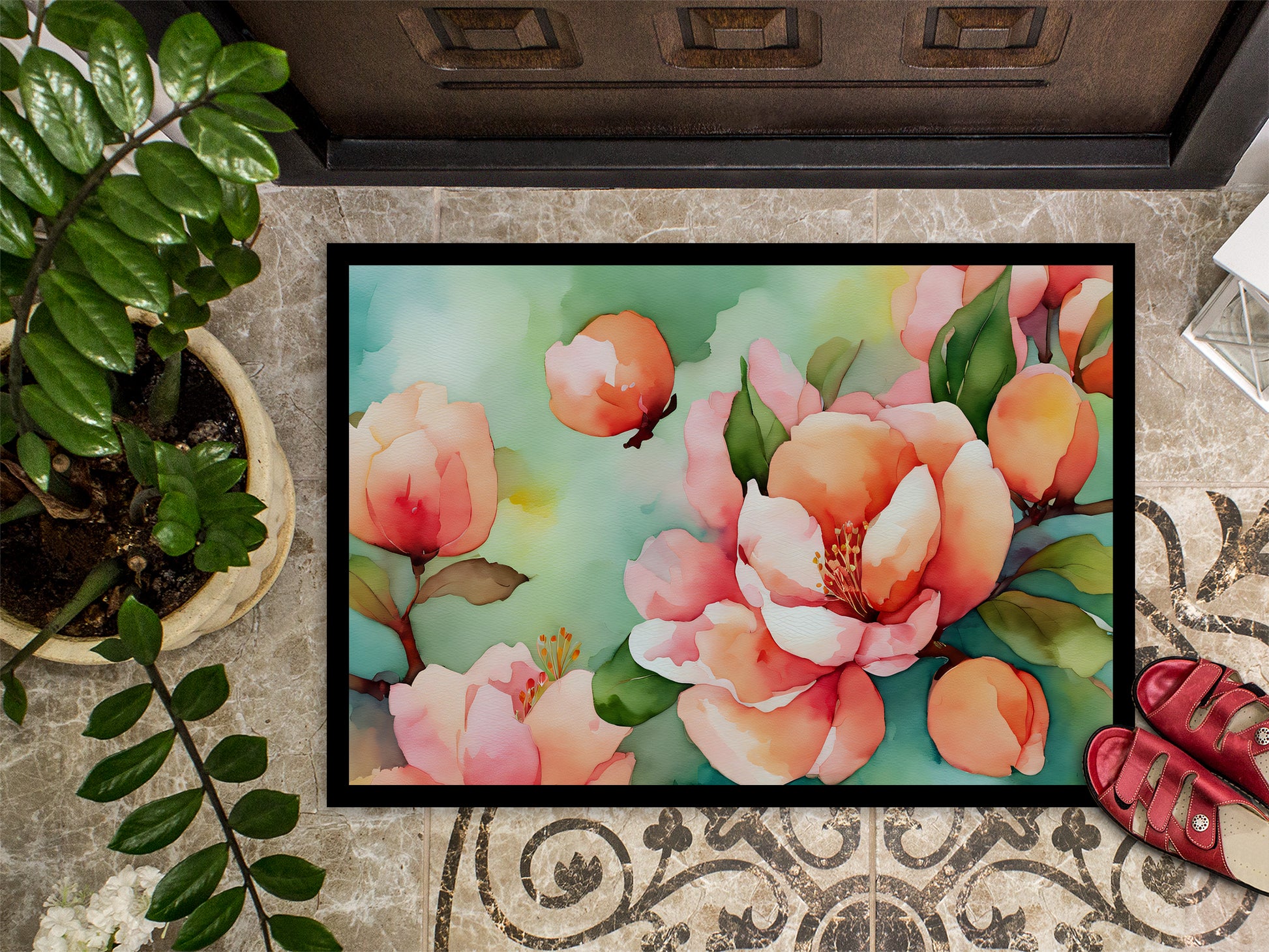 Delaware Peach Blossom in Watercolor Doormat