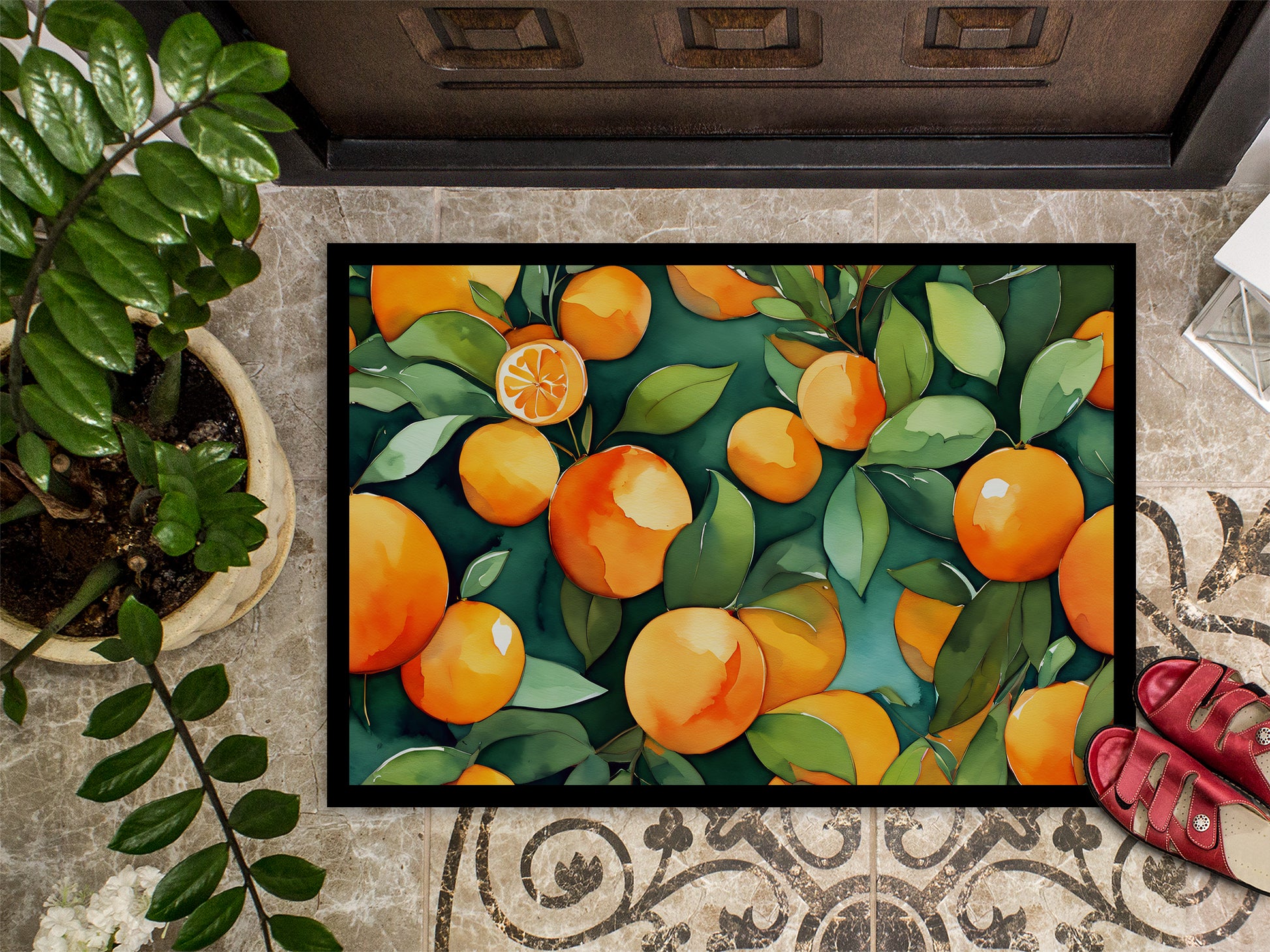 Doormat featuring breed specific Florida Orange Blossom artwork. Welcome your guests in style with our Artwork Door Mat, designed to withstand almost any weather condition. This mat, measuring approximately 18 by 27 inches, is held together by durable black binding tape. Its top layer, composed of polyester felt, is dyed with the eye-catching image you see on the mat. A few layers below provide the mat with stability, while its rubber bottom is stamped to help prevent slipping and ensures safety. Our mat works wonderfully as both an indoor or outdoor door mat. For cleaning, simply hose it off with water or use a power washer - no need for any cleaner that produces suds. Avoid scrubbing with a brush, instead, opt for the vacuum on floor setting. Designed manufactured and printed in the USA, this mat is a perfect addition to your porch, outdoor kitchen, entryway, or any indoor space. Its unique design makes it a charming decorative rug that greets your guests and adds a stylish touch to your home decor.