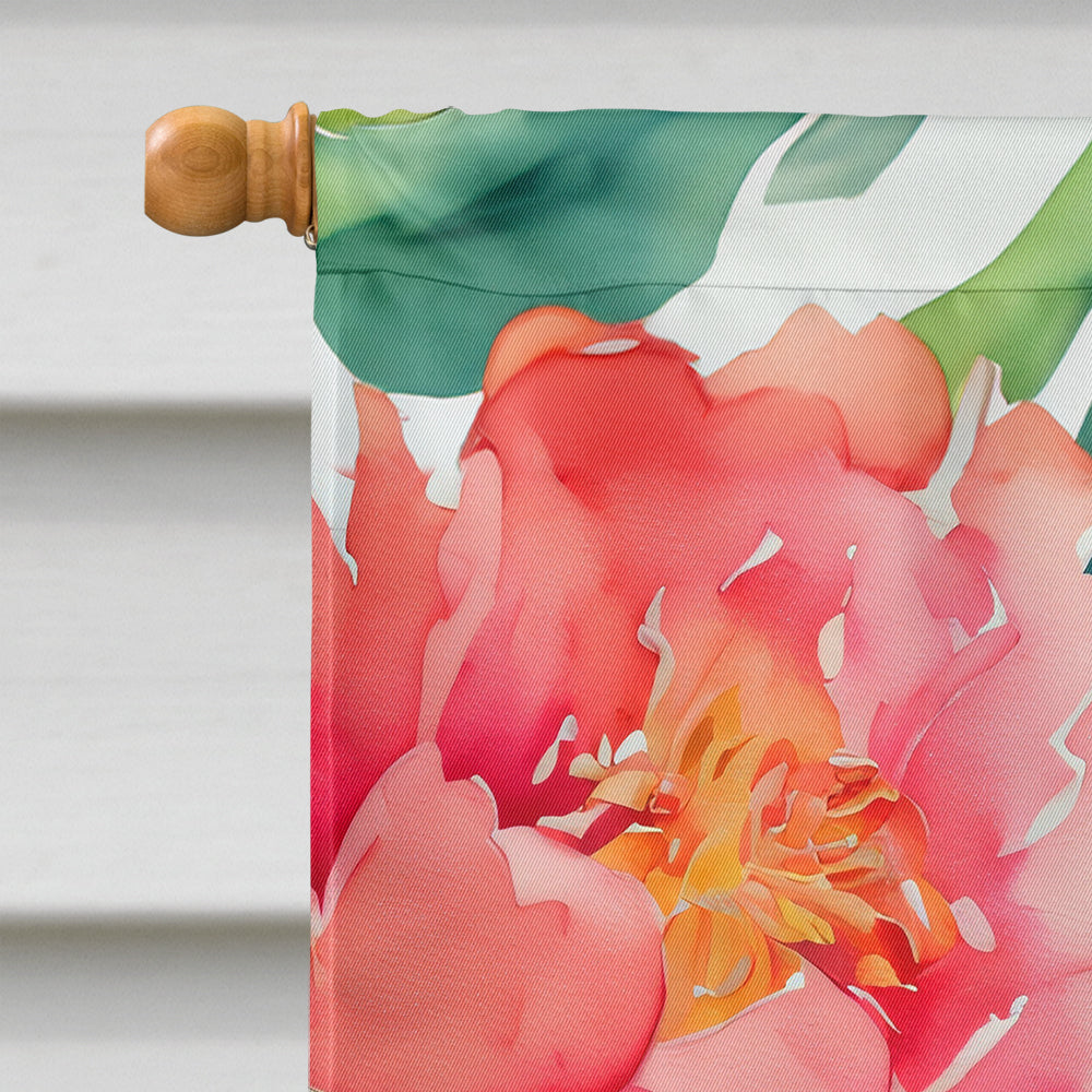 House Flag featuring breed specific Indiana Peonies artwork. Presenting our Heavy Duty Polyester House Size Decorative Sleeve Pole Flag, a vibrant addition to enhance the aesthetic appeal of your home. This large decorative flag, measuring approximately 28 x 40 inches, offers ample coverage and visibility. Each flag is meticulously sewn and made individually, ensuring a unique piece that may slightly vary in size. It's a sleeve pole flag, designed to fit a standard decorative flag pole effortlessly. Please note that the flag pole and bracket are not included and should be purchased separately. What sets our flag apart is its dual-sided print. The design is mirrored on both sides of the fabric, allowing for uniform visibility regardless of the angle. Printed in full color, our flag showcases vibrant hues that truly stand out. To ensure lasting vibrancy and durability, the dyes are heat-set into the fabric. This ensures your flag remains bright and captivating through various weather conditions. Elevate the look of your home with our Heavy Duty Polyester House Size Decorative Sleeve Pole Flag!