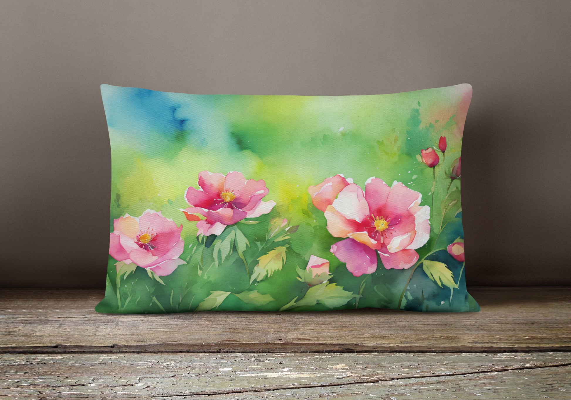 Throw Pillow featuring breed specific Iowa Wild Prairie Roses artwork. Embrace the fusion of comfort and style with Caroline's Treasures Fabric Decorative Pillow. This 12x16 inch outdoor pillow is designed to complement your patio furniture, adding a splash of color and artistry to your outdoor setting. Constructed with a 100% Polyester Fabric pillow sham filled with a plush pillow form, this cushion is as comfortable as it is durable. Our outdoor pillow utilizes a novel fabric, meticulously woven for enhanced water resistance. This soft canvas material is equally suited for your indoor couch as well as outdoor settings such as the patio, porch, or veranda. To ensure enduring vibrance, we employ colorfast dyes resistant to fading even when subjected to weather elements. The making of this pillow involves the delicate sewing together of three fabric pieces to create a sham, into which a polyester insert is carefully placed. The result is an overstuffed pillow that tenaciously holds its shape. With both the sham and the pillow insert crafted in the United States, these handmade pillows are a testament to superior local craftsmanship. Note that as these pillows are handmade, sizes may slightly vary, enhancing their unique appeal. Enjoy comfort in style with Caroline's Treasures Fabric Decorative Pillow.