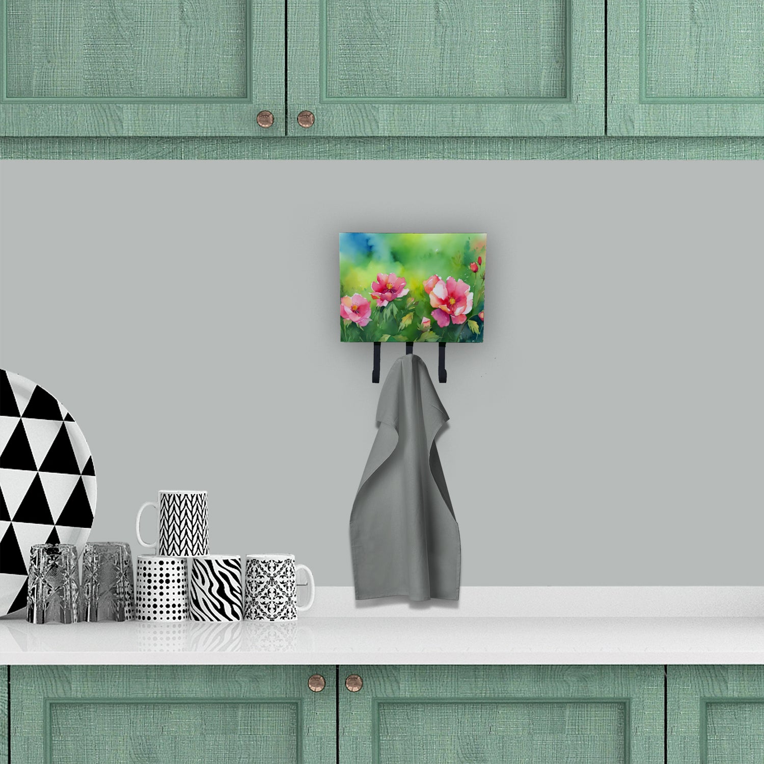 Leash or Key Holder featuring breed specific Iowa Wild Prairie Roses artwork. Transform your home or office's organization with the Caroline's Treasures Triple Leash or Key Holder. Offering versatility and style, this triple hook holder is perfect for holding keys, leashes, or just about any other small items you need to keep at hand. Crafted with a hardboard tile mounted to a metal rectangle, this holder's structure speaks of durability and reliability. Each hook hangs down about 2.5 inches from the base, providing ample space for hanging your essentials. Despite its robustness, this triple hook holder remains simple to install. It comes with a 1.5-inch long hanger attached to the metal plate, ensuring easy installation with a screw or paneling nail. This holder, measuring 6 x 2 x 9 inches and weighing only 1 lb, is a compact and lightweight solution to your storage needs. Ideal for home or office use, the Caroline's Treasures Triple Leash or Key Holder enhances organization while adding a touch of sophistication to your space.