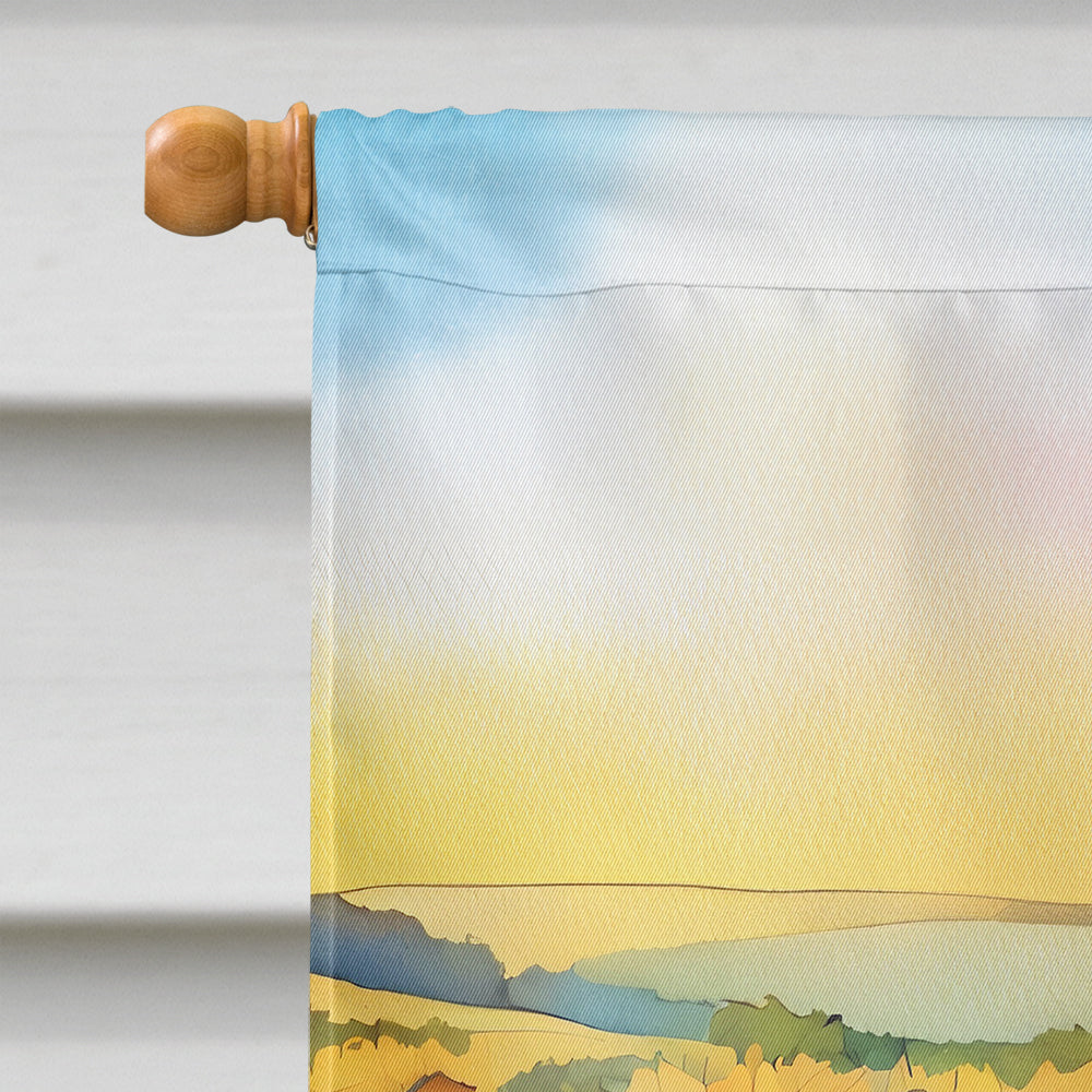 House Flag featuring breed specific Kansas Sunflowers artwork. Presenting our Heavy Duty Polyester House Size Decorative Sleeve Pole Flag, a vibrant addition to enhance the aesthetic appeal of your home. This large decorative flag, measuring approximately 28 x 40 inches, offers ample coverage and visibility. Each flag is meticulously sewn and made individually, ensuring a unique piece that may slightly vary in size. It's a sleeve pole flag, designed to fit a standard decorative flag pole effortlessly. Please note that the flag pole and bracket are not included and should be purchased separately. What sets our flag apart is its dual-sided print. The design is mirrored on both sides of the fabric, allowing for uniform visibility regardless of the angle. Printed in full color, our flag showcases vibrant hues that truly stand out. To ensure lasting vibrancy and durability, the dyes are heat-set into the fabric. This ensures your flag remains bright and captivating through various weather conditions. Elevate the look of your home with our Heavy Duty Polyester House Size Decorative Sleeve Pole Flag!