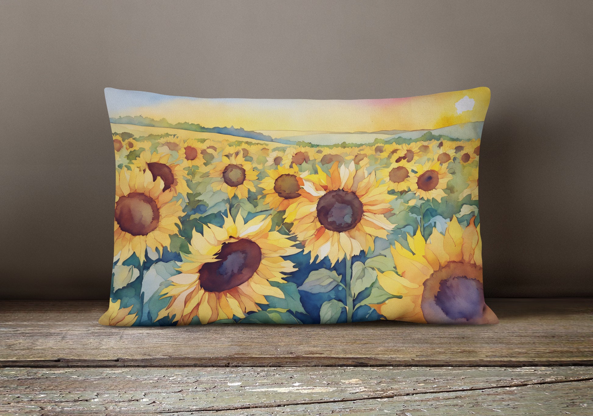 Throw Pillow featuring breed specific Kansas Sunflowers artwork. Embrace the fusion of comfort and style with Caroline's Treasures Fabric Decorative Pillow. This 12x16 inch outdoor pillow is designed to complement your patio furniture, adding a splash of color and artistry to your outdoor setting. Constructed with a 100% Polyester Fabric pillow sham filled with a plush pillow form, this cushion is as comfortable as it is durable. Our outdoor pillow utilizes a novel fabric, meticulously woven for enhanced water resistance. This soft canvas material is equally suited for your indoor couch as well as outdoor settings such as the patio, porch, or veranda. To ensure enduring vibrance, we employ colorfast dyes resistant to fading even when subjected to weather elements. The making of this pillow involves the delicate sewing together of three fabric pieces to create a sham, into which a polyester insert is carefully placed. The result is an overstuffed pillow that tenaciously holds its shape. With both the sham and the pillow insert crafted in the United States, these handmade pillows are a testament to superior local craftsmanship. Note that as these pillows are handmade, sizes may slightly vary, enhancing their unique appeal. Enjoy comfort in style with Caroline's Treasures Fabric Decorative Pillow.