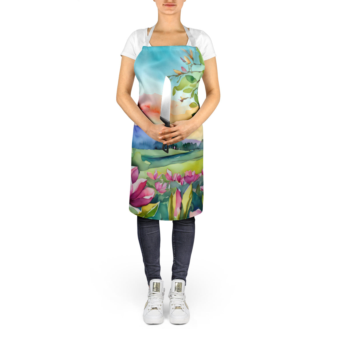Apron featuring breed specific Louisiana Magnolias artwork. Elevate your cooking, baking, and grilling experiences with our versatile Kitchen or BBQ Apron. This Bib Style apron isn't just limited to culinary activities - it also serves as an excellent baking apron, artist apron, server apron, gardening apron, or even a dog grooming apron. The apron showcases vibrant full-color artwork contributed by one of our talented artists, bringing a dash of style to your daily tasks. With dimensions of approximately 27"W x 30"H, it provides ample coverage to protect your clothing from spills and splashes. Our apron is meticulously crafted from 100% Ultra Spun Polyester, known for its durability and lightweight nature. The apron comes with white tie straps, ensuring a comfortable and adjustable fit for all. It's a perfect choice for kitchen apron enthusiasts, whether you are a woman or a man. Designed for easy maintenance, this apron is fully machine washable. The quick-drying polyester material actively reduces staining, keeping your apron looking fresh and new for longer. Our beautifully designed apron isn't just a functional kitchen accessory - it's a fashion statement in the culinary world!