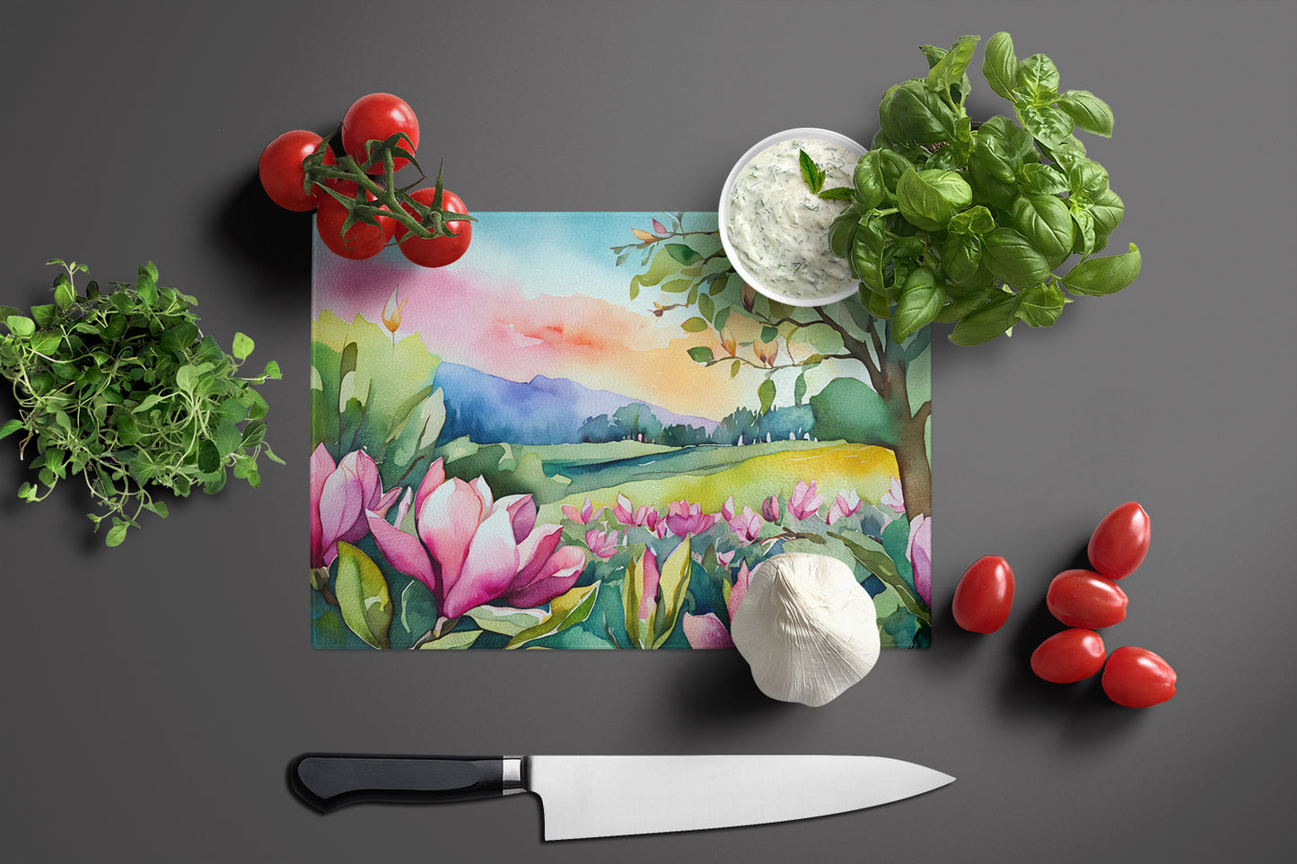 Louisiana Magnolias in Watercolor Glass Cutting Board