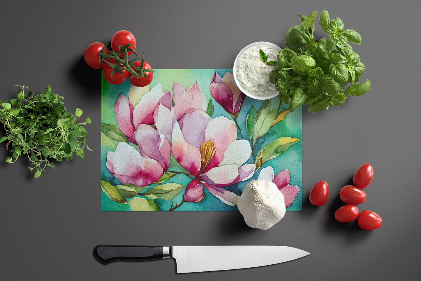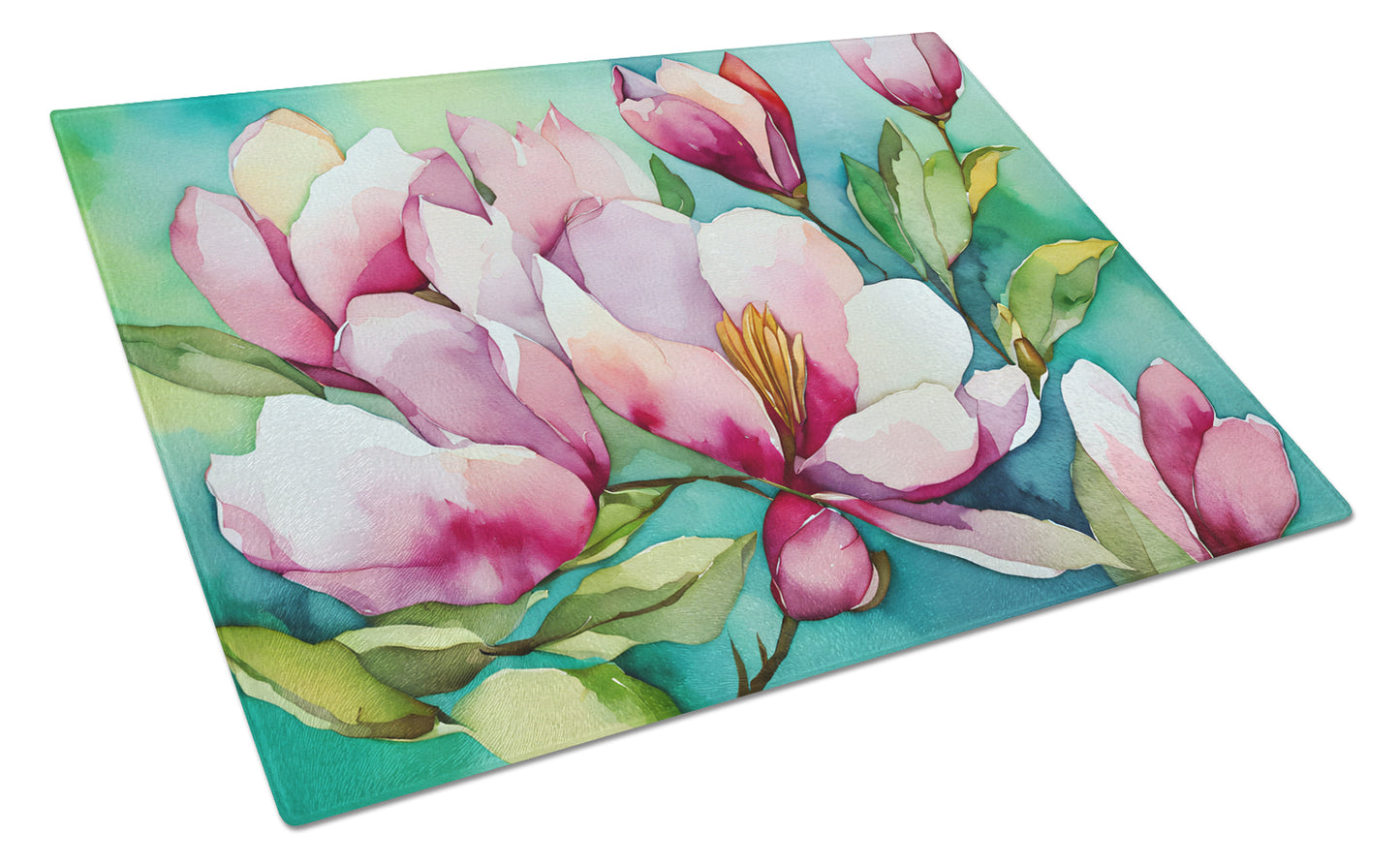 Louisiana Magnolias in Watercolor Glass Cutting Board