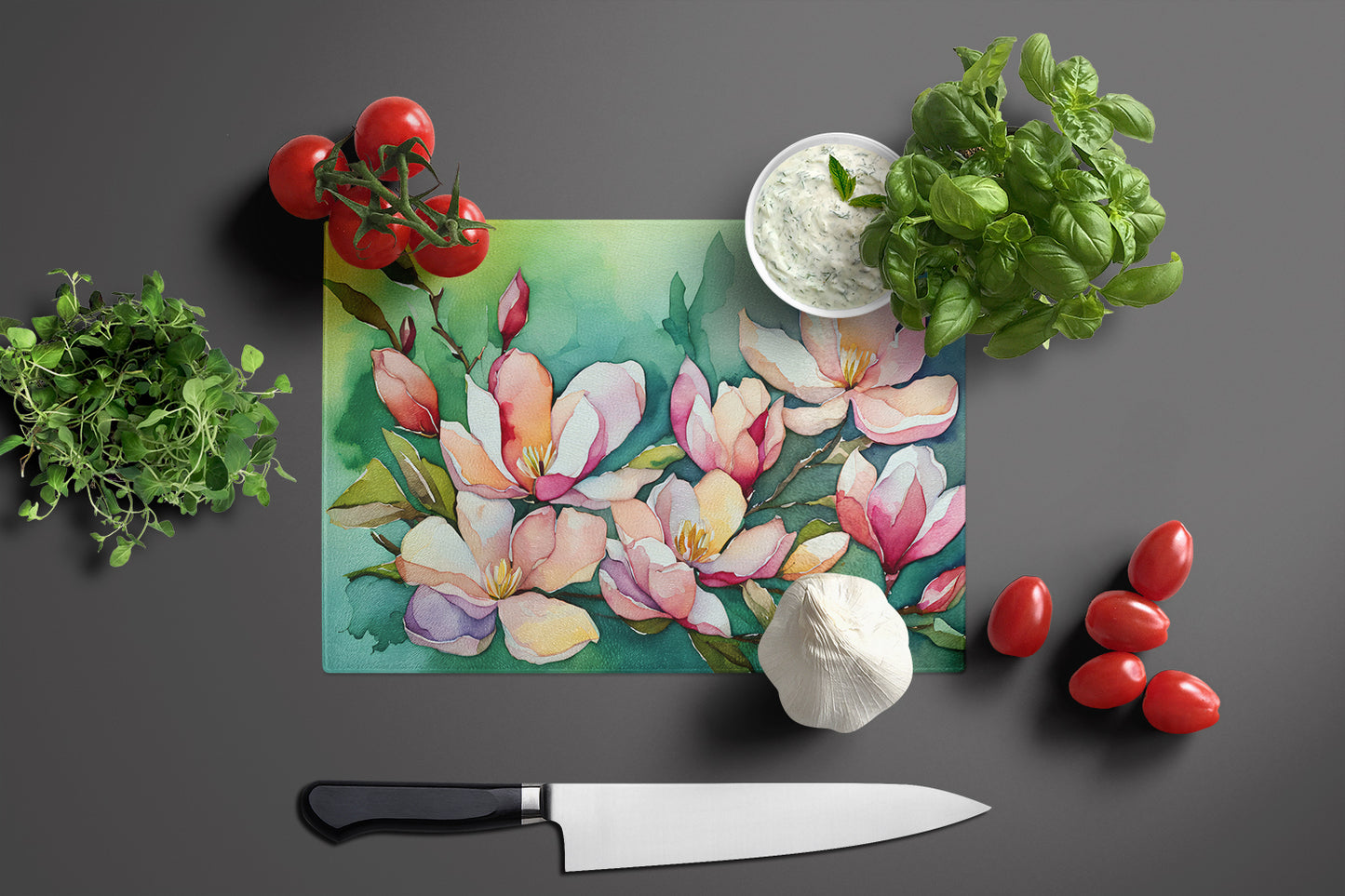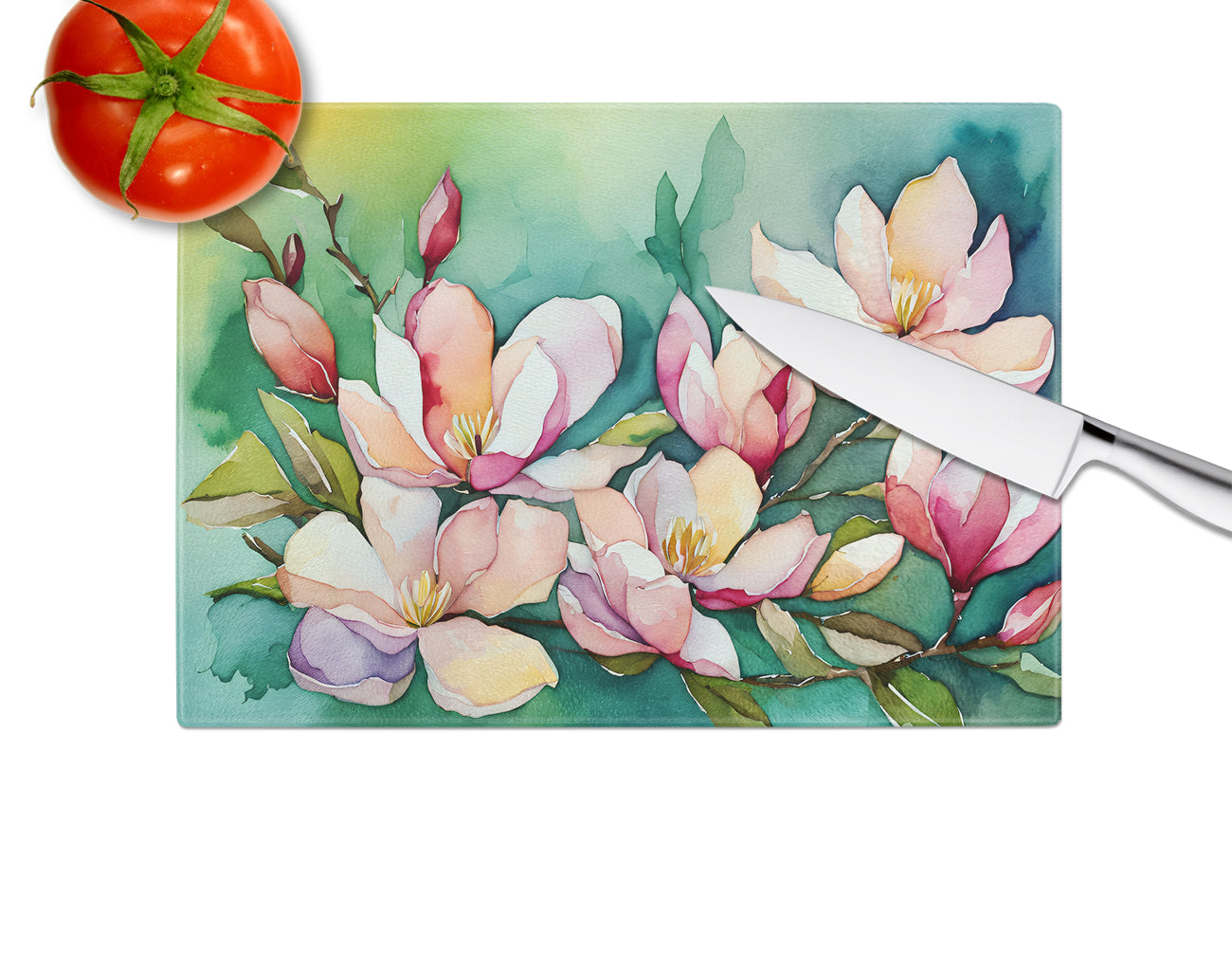 Louisiana Magnolias in Watercolor Glass Cutting Board