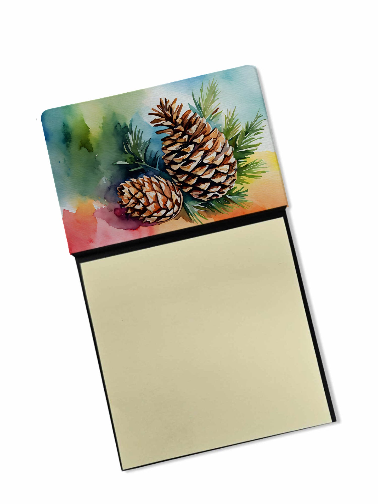 Maine White Pine Cone and Tassels in Watercolor Sticky Note Holder