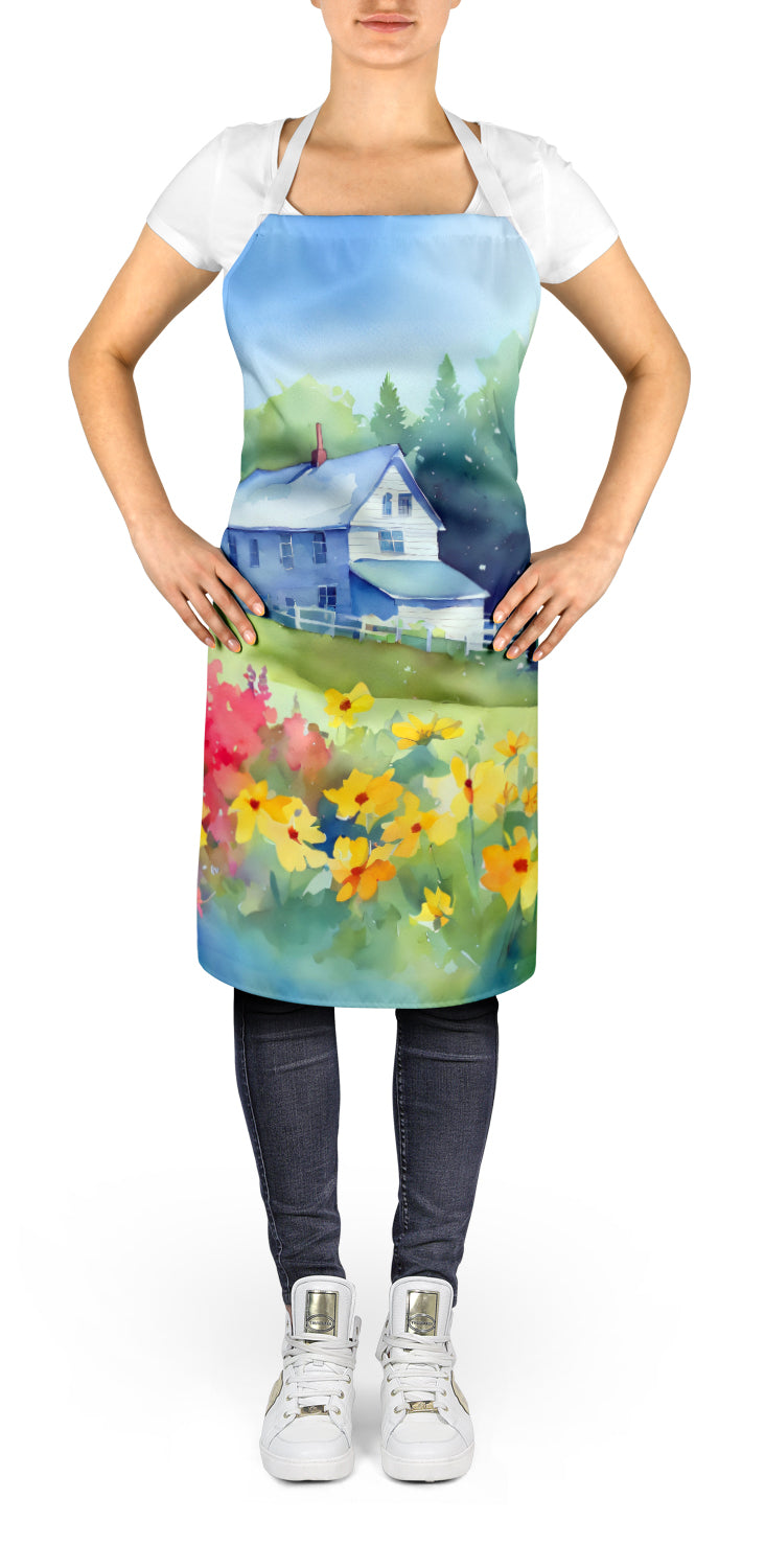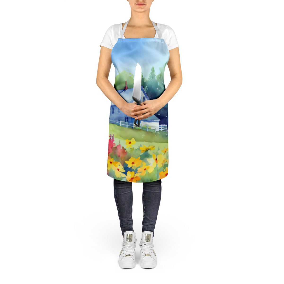 Apron featuring breed specific Massachusetts Mayflowers artwork. Elevate your cooking, baking, and grilling experiences with our versatile Kitchen or BBQ Apron. This Bib Style apron isn't just limited to culinary activities - it also serves as an excellent baking apron, artist apron, server apron, gardening apron, or even a dog grooming apron. The apron showcases vibrant full-color artwork contributed by one of our talented artists, bringing a dash of style to your daily tasks. With dimensions of approximately 27"W x 30"H, it provides ample coverage to protect your clothing from spills and splashes. Our apron is meticulously crafted from 100% Ultra Spun Polyester, known for its durability and lightweight nature. The apron comes with white tie straps, ensuring a comfortable and adjustable fit for all. It's a perfect choice for kitchen apron enthusiasts, whether you are a woman or a man. Designed for easy maintenance, this apron is fully machine washable. The quick-drying polyester material actively reduces staining, keeping your apron looking fresh and new for longer. Our beautifully designed apron isn't just a functional kitchen accessory - it's a fashion statement in the culinary world!