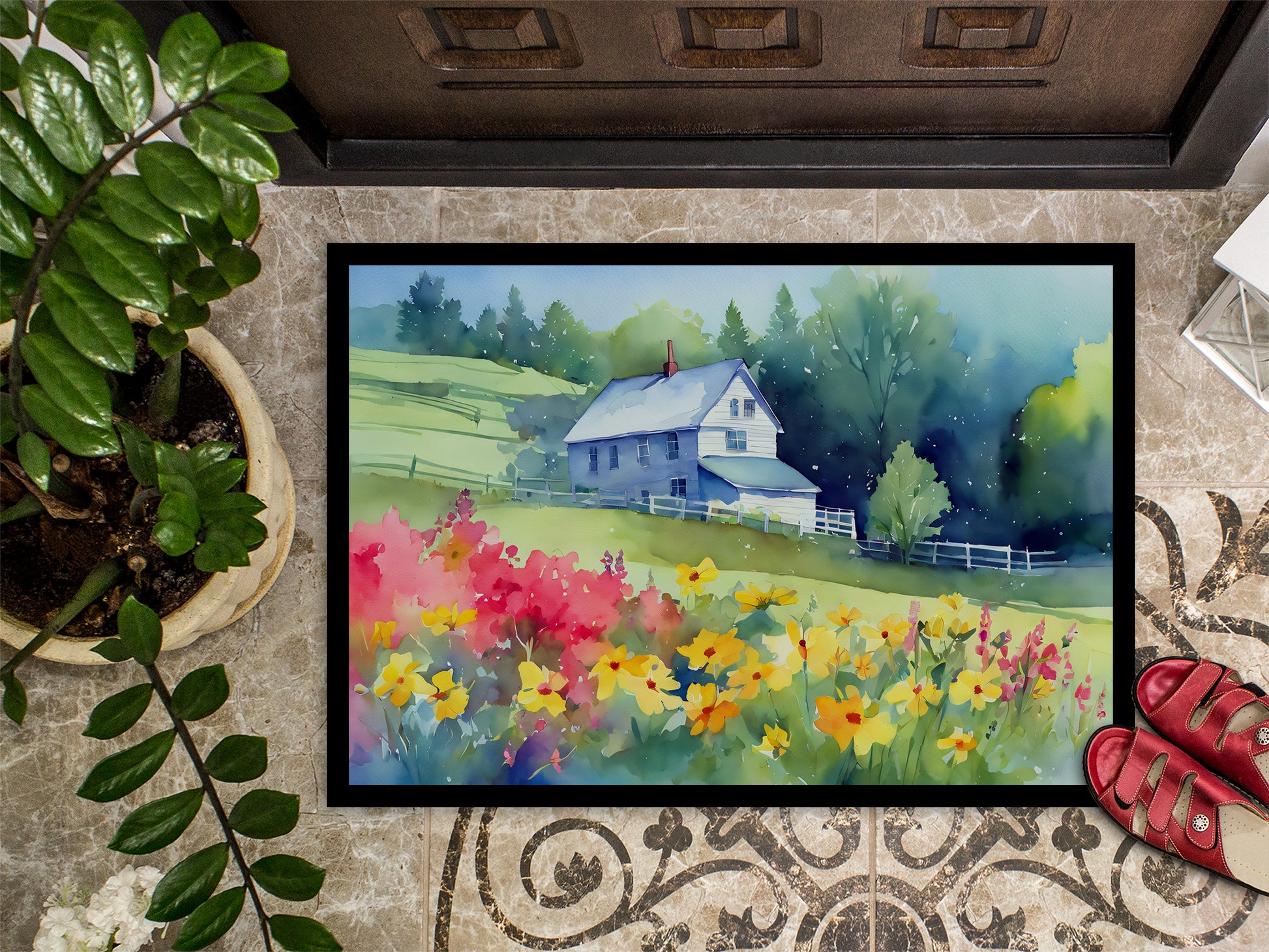 Doormat featuring breed specific Massachusetts Mayflowers artwork. Welcome your guests in style with our Artwork Door Mat, designed to withstand almost any weather condition. This mat, measuring approximately 24 by 36 inches, is held together by durable black binding tape. Its top layer, composed of polyester felt, is dyed with the eye-catching image you see on the mat. A few layers below provide the mat with stability, while its rubber bottom is stamped to help prevent slipping and ensures safety. Our mat works wonderfully as both an indoor or outdoor door mat. For cleaning, simply hose it off with water or use a power washer - no need for any cleaner that produces suds. Avoid scrubbing with a brush, instead, opt for the vacuum on floor setting. Designed manufactured and printed in the USA, this mat is a perfect addition to your porch, outdoor kitchen, entryway, or any indoor space. Its unique design makes it a charming decorative rug that greets your guests and adds a stylish touch to your home decor.