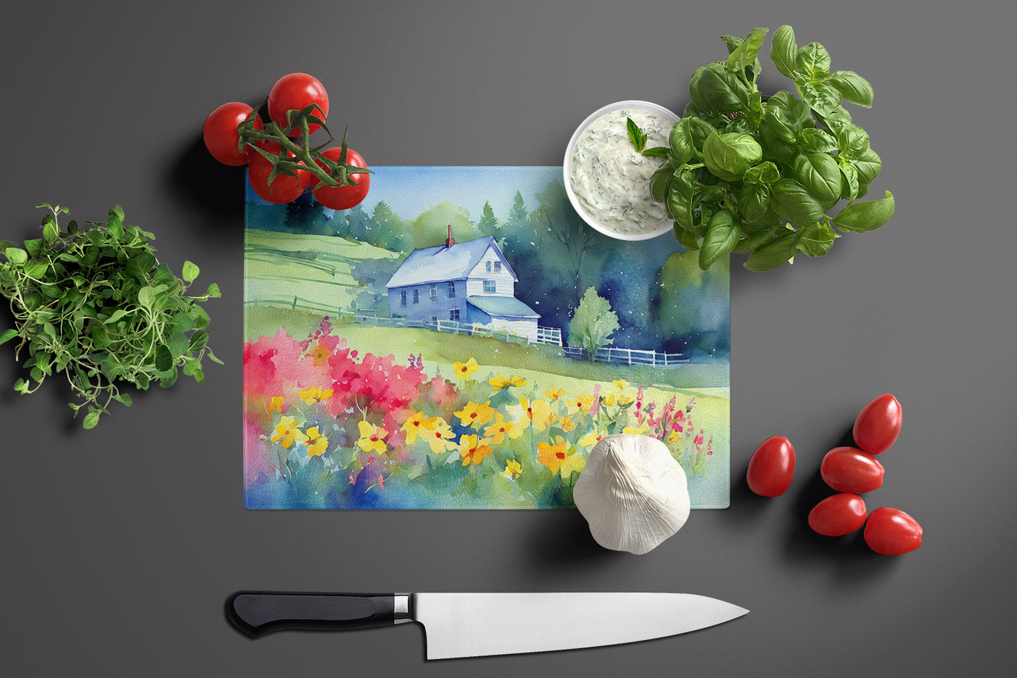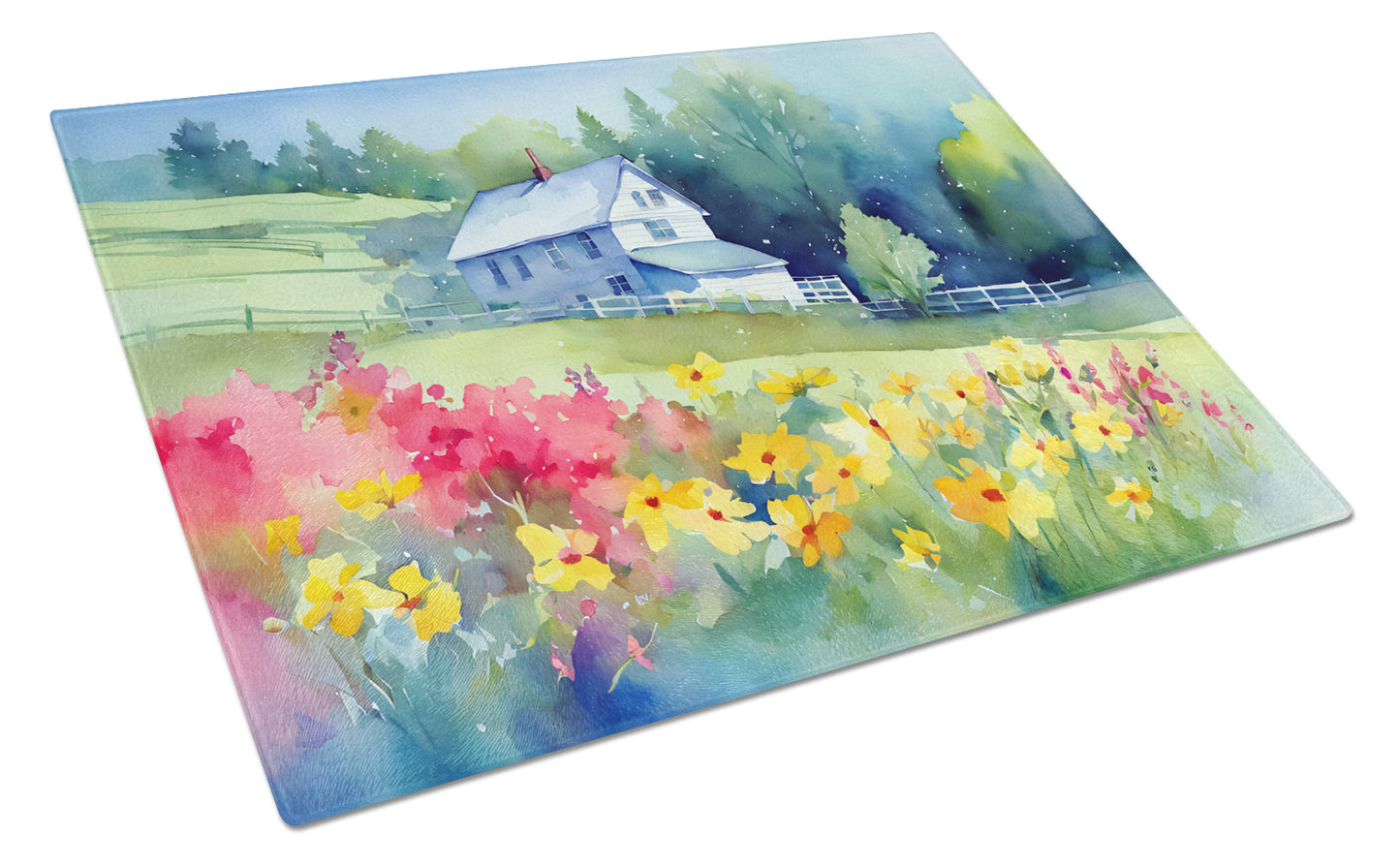 Massachusetts Mayflowers in Watercolor Glass Cutting Board