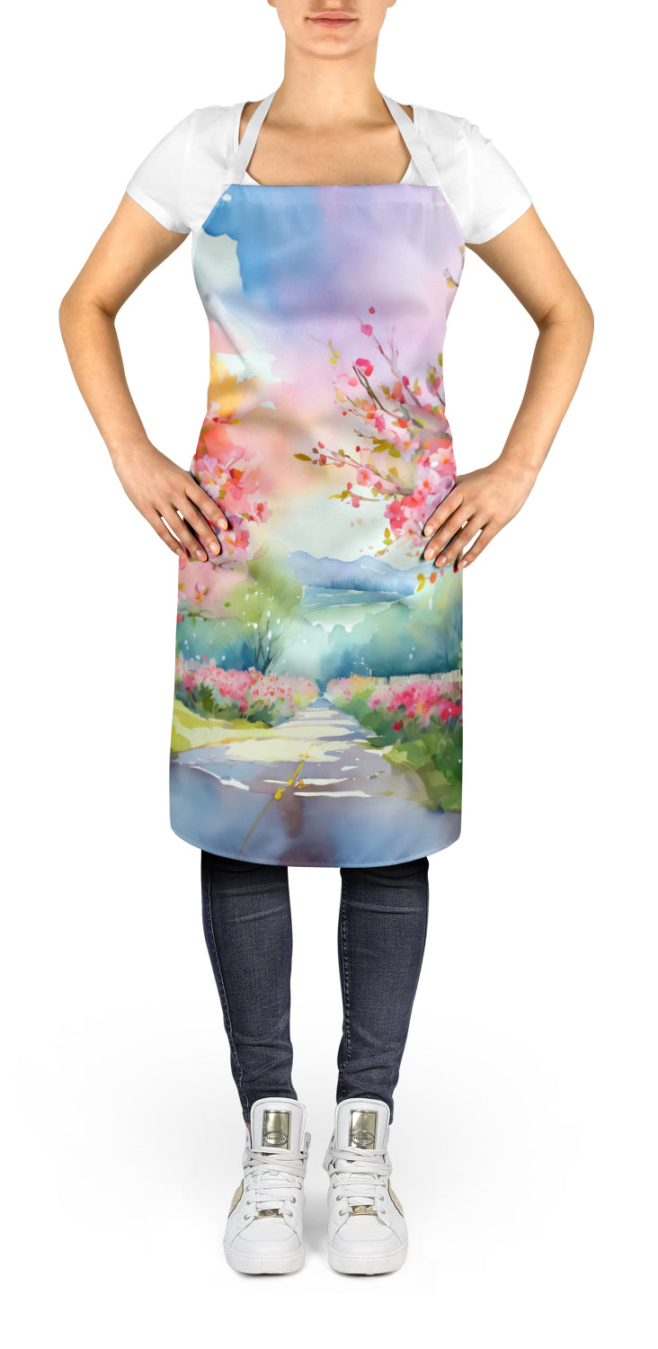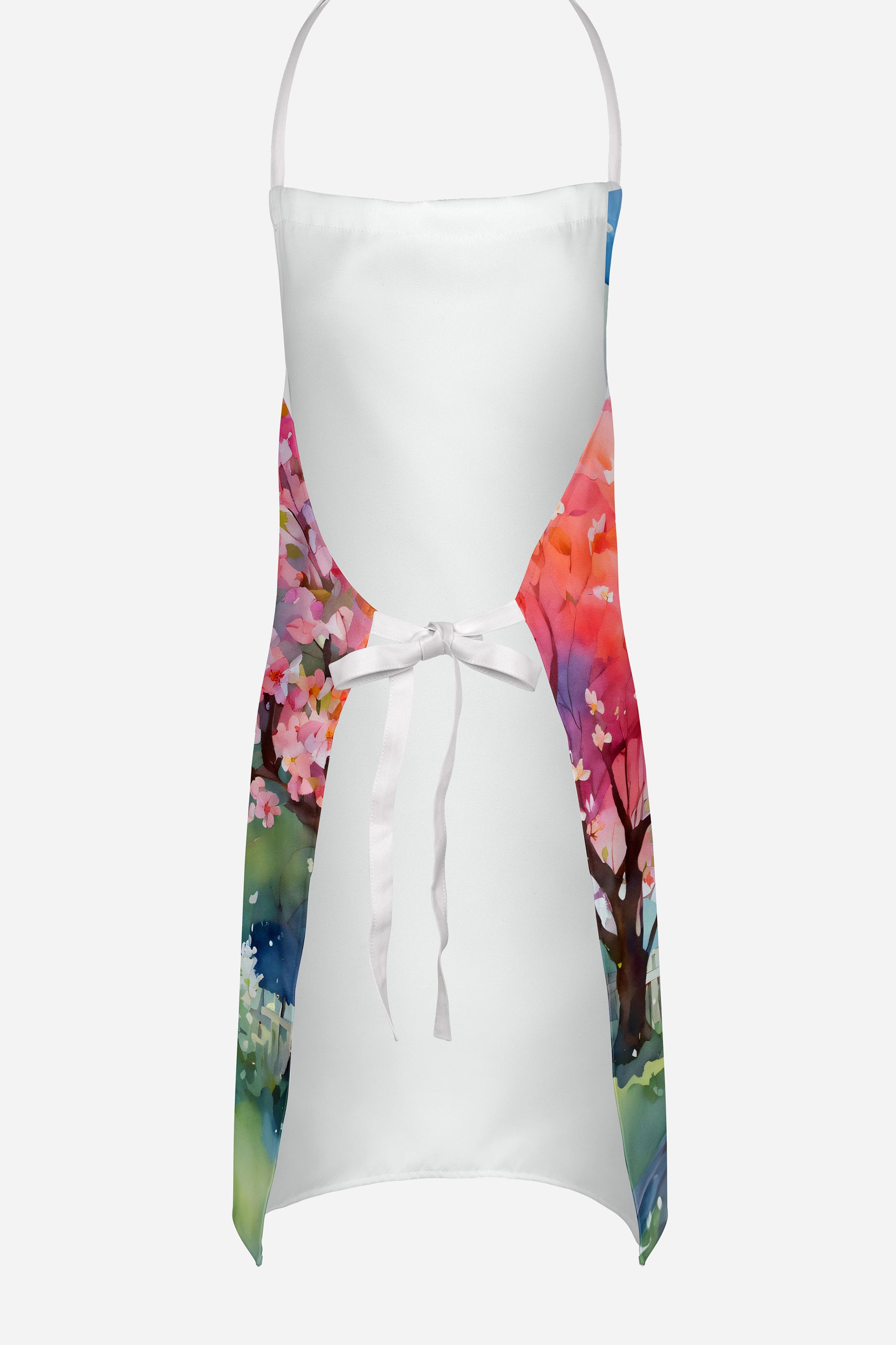 Apron featuring breed specific Michigan Apple Blossoms artwork. Elevate your cooking, baking, and grilling experiences with our versatile Kitchen or BBQ Apron. This Bib Style apron isn't just limited to culinary activities - it also serves as an excellent baking apron, artist apron, server apron, gardening apron, or even a dog grooming apron. The apron showcases vibrant full-color artwork contributed by one of our talented artists, bringing a dash of style to your daily tasks. With dimensions of approximately 27"W x 30"H, it provides ample coverage to protect your clothing from spills and splashes. Our apron is meticulously crafted from 100% Ultra Spun Polyester, known for its durability and lightweight nature. The apron comes with white tie straps, ensuring a comfortable and adjustable fit for all. It's a perfect choice for kitchen apron enthusiasts, whether you are a woman or a man. Designed for easy maintenance, this apron is fully machine washable. The quick-drying polyester material actively reduces staining, keeping your apron looking fresh and new for longer. Our beautifully designed apron isn't just a functional kitchen accessory - it's a fashion statement in the culinary world!