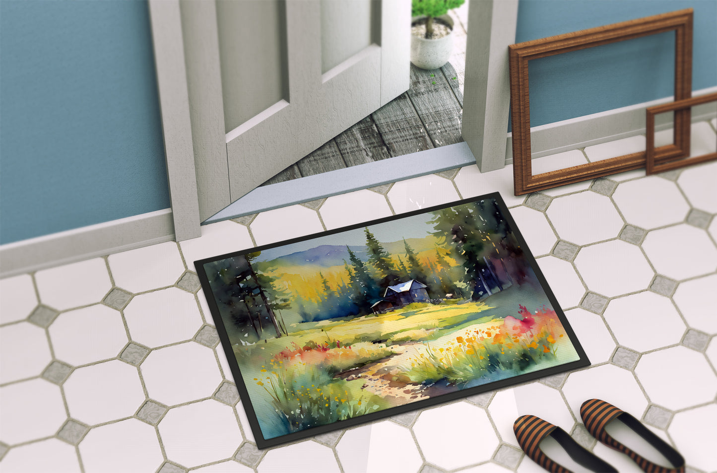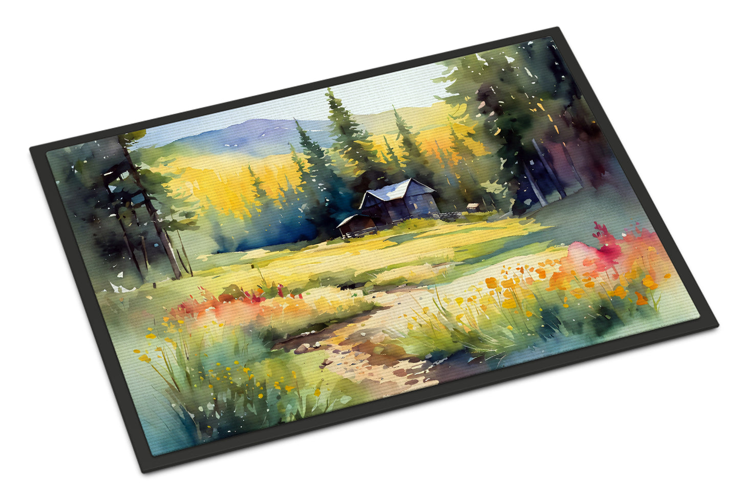 Doormat featuring breed specific Montana Bitterroot artwork. Welcome your guests in style with our Artwork Door Mat, designed to withstand almost any weather condition. This mat, measuring approximately 24 by 36 inches, is held together by durable black binding tape. Its top layer, composed of polyester felt, is dyed with the eye-catching image you see on the mat. A few layers below provide the mat with stability, while its rubber bottom is stamped to help prevent slipping and ensures safety. Our mat works wonderfully as both an indoor or outdoor door mat. For cleaning, simply hose it off with water or use a power washer - no need for any cleaner that produces suds. Avoid scrubbing with a brush, instead, opt for the vacuum on floor setting. Designed manufactured and printed in the USA, this mat is a perfect addition to your porch, outdoor kitchen, entryway, or any indoor space. Its unique design makes it a charming decorative rug that greets your guests and adds a stylish touch to your home decor.