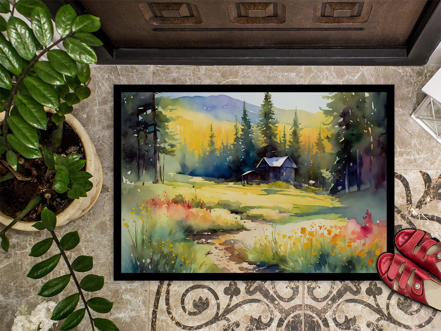 Montana Bitterroot in Watercolor Doormat