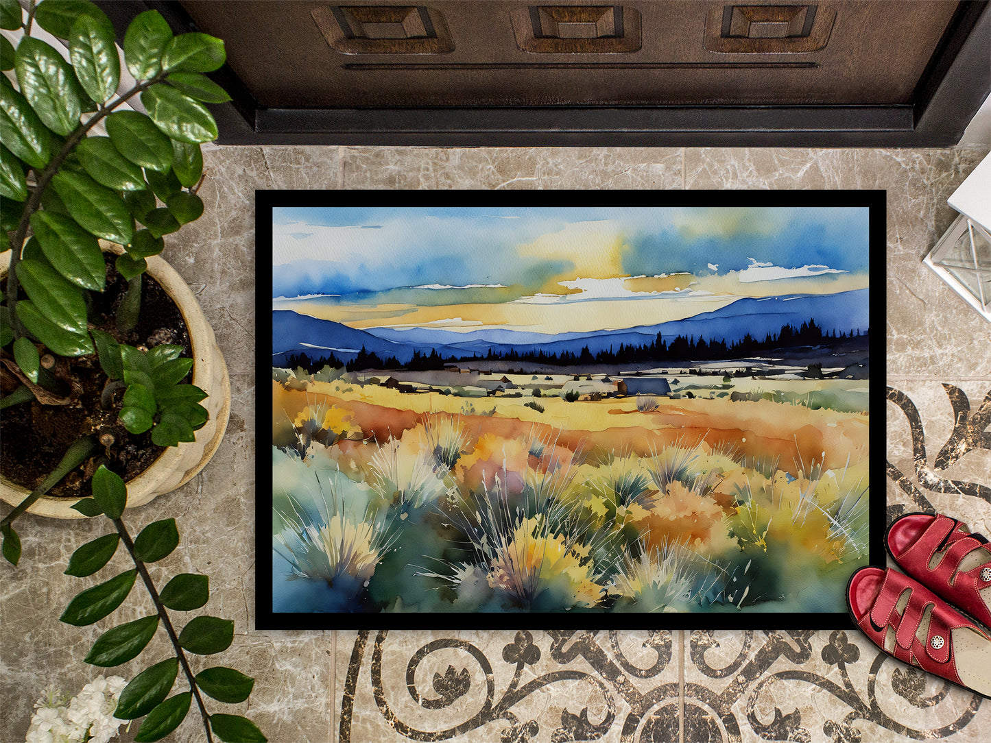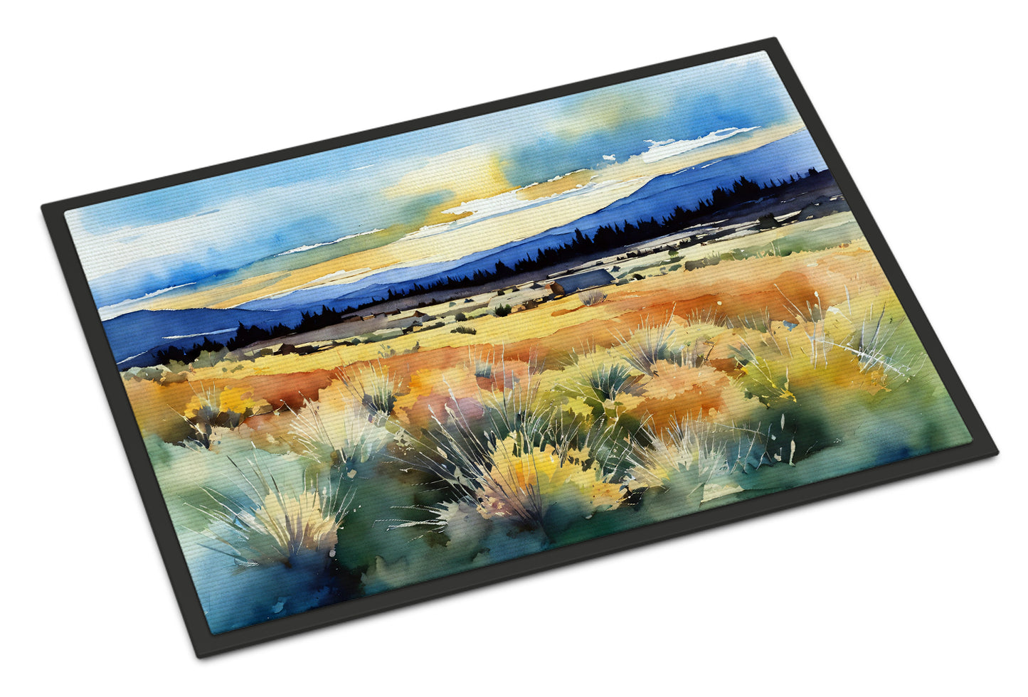 Doormat featuring breed specific Nevada Sagebrush artwork. Welcome your guests in style with our Artwork Door Mat, designed to withstand almost any weather condition. This mat, measuring approximately 24 by 36 inches, is held together by durable black binding tape. Its top layer, composed of polyester felt, is dyed with the eye-catching image you see on the mat. A few layers below provide the mat with stability, while its rubber bottom is stamped to help prevent slipping and ensures safety. Our mat works wonderfully as both an indoor or outdoor door mat. For cleaning, simply hose it off with water or use a power washer - no need for any cleaner that produces suds. Avoid scrubbing with a brush, instead, opt for the vacuum on floor setting. Designed manufactured and printed in the USA, this mat is a perfect addition to your porch, outdoor kitchen, entryway, or any indoor space. Its unique design makes it a charming decorative rug that greets your guests and adds a stylish touch to your home decor.