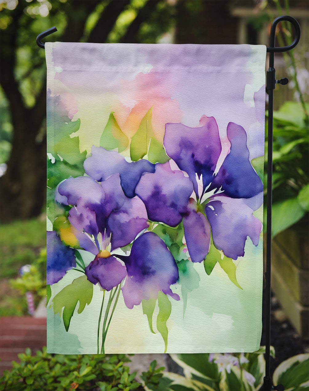 Garden Flag featuring breed specific New Jersey Violet artwork. Enhance the beauty of your garden, patio, or yard with Caroline's Treasures Decorative Garden Flag, proudly made in the USA. Crafted from two pieces of thick, double-sided polyester fabric, this 2-ply garden flag is designed to withstand various weather conditions, making it water-resistant and weatherproof. Featuring correctly readable words on both sides, this garden flag offers a delightful visual experience from any angle. With its heavier weight, it stands out among other garden flags, ensuring stability and durability even in wind, rain, and snow. Measuring approximately 11 1/4 inches by 15 1/2 inches, this flag allows you to personalize your outdoor decor. It comes with a 1 1/2-inch sleeve sewn in, allowing easy attachment to any standard garden flag stand or garden size porch hanger (sold separately). Make a statement in your outdoor space with Caroline's Treasures Decorative Garden Flag, a vibrant and high-quality flag that adds color and personality to your surroundings. Proudly made in the USA, it's a symbol of quality craftsmanship and attention to detail.